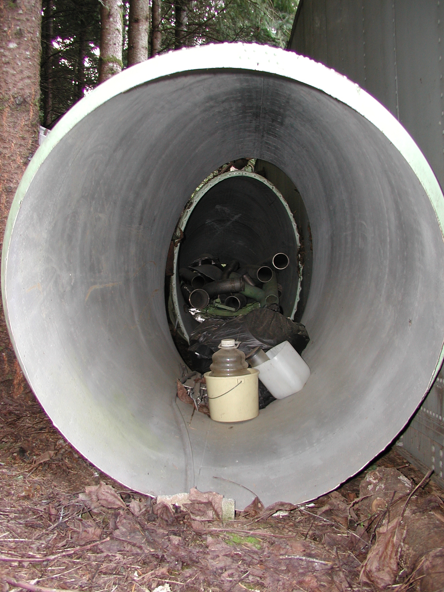 'S' duct sections, one intact and housing some miscellaneous conduits and