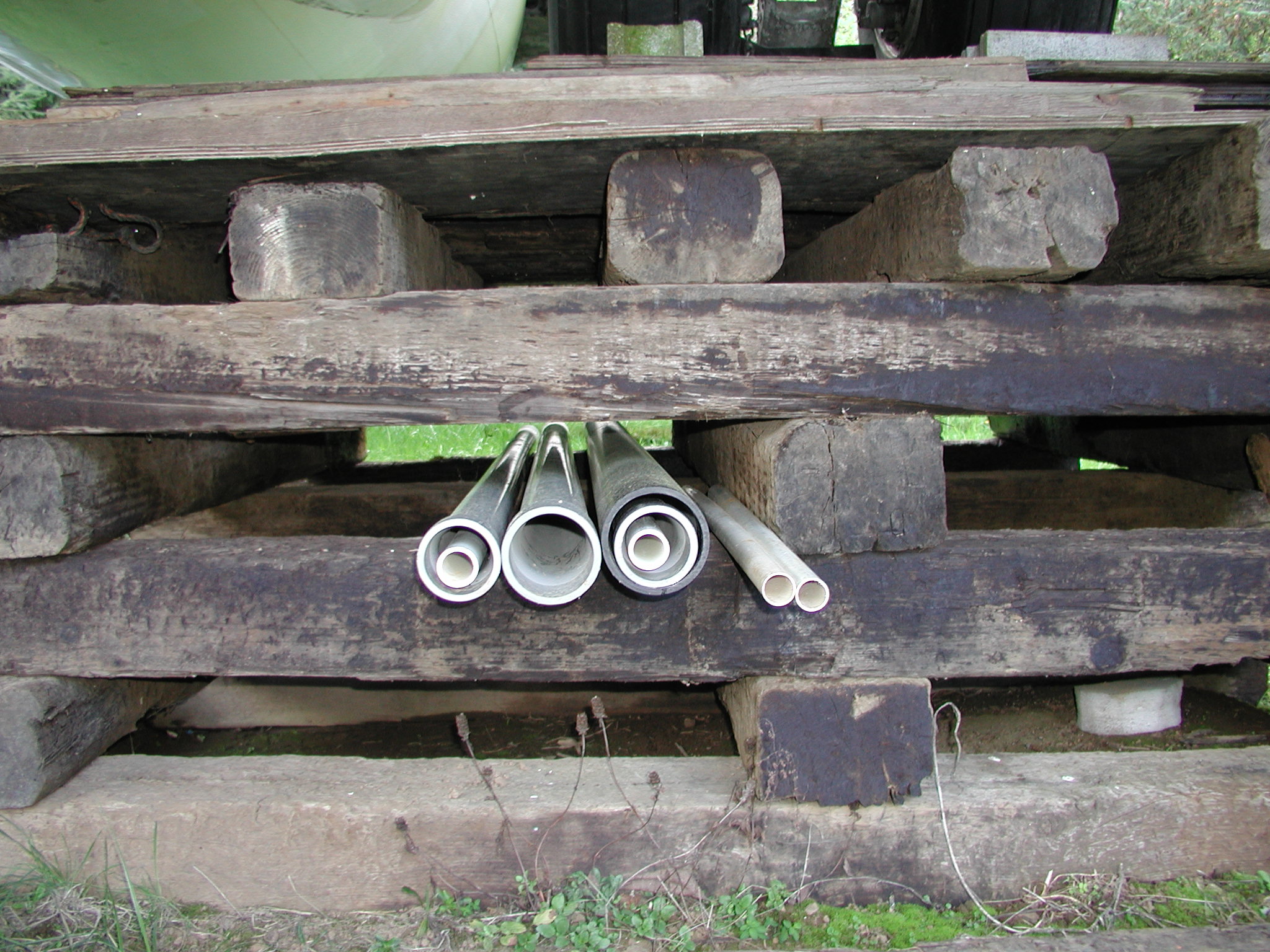 Here's a description of the work so far: I dug a two foot deep trench from the electric meter base to a roughly five foot deep post hole, which I dug just beneath the water service port on the left side of the aircraft, just below the leading edge of the wing. The trench intersects the old underground water line and water well's power cable that used to serve the mobile home (which used to be located roughly underneath the aircraft's current position). I also acquired water pipe, 4" and smaller schedule 80 gray PVC electrical conduit, and other plumbing components.