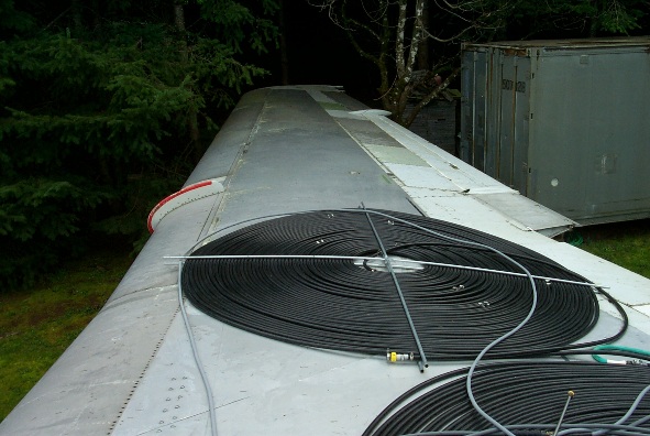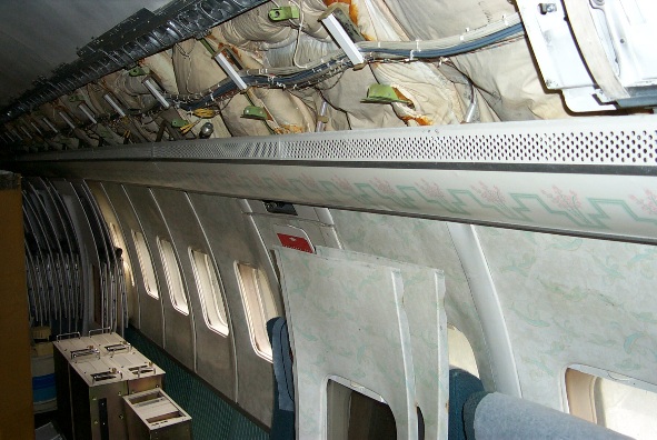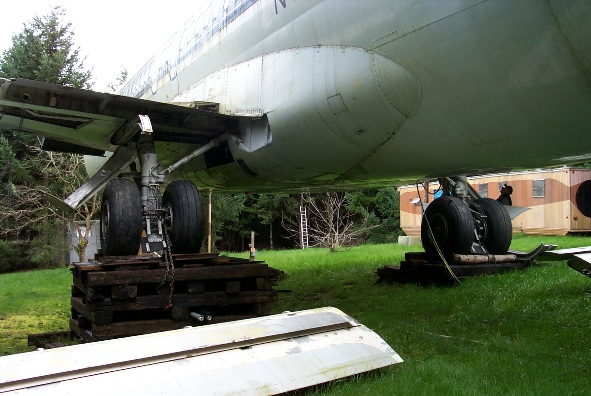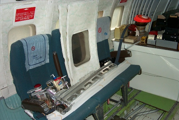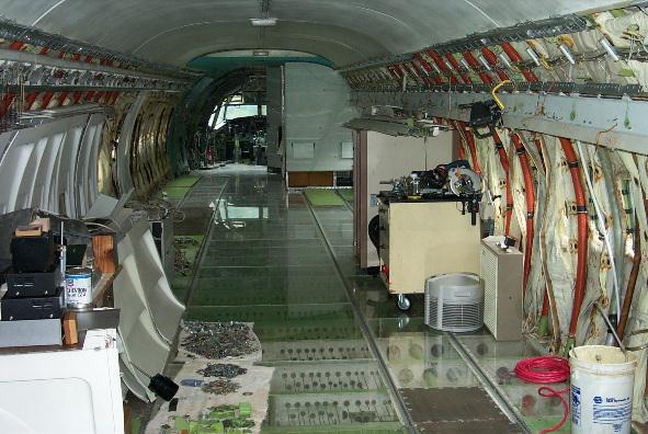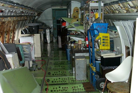 The transmission in my old clothes washer died, so rather than waste time resurrecting it, I installed a polyethylene cold water line from the aircraft's titanium water tank to a newer washer located opposite the rear galley. Now I wash my clothes there - I'm the proud owner of a Boeing 727 laundromat. The connection to the aircraft's water service port is just temporary, via a garden hose, until I finish the work described above. But the polyethylene water line is intended to be permanent, although, like almost everything else in the aircraft, it could be rather easily modified since it routes behind or under panels that are very easily popped off for easy access.