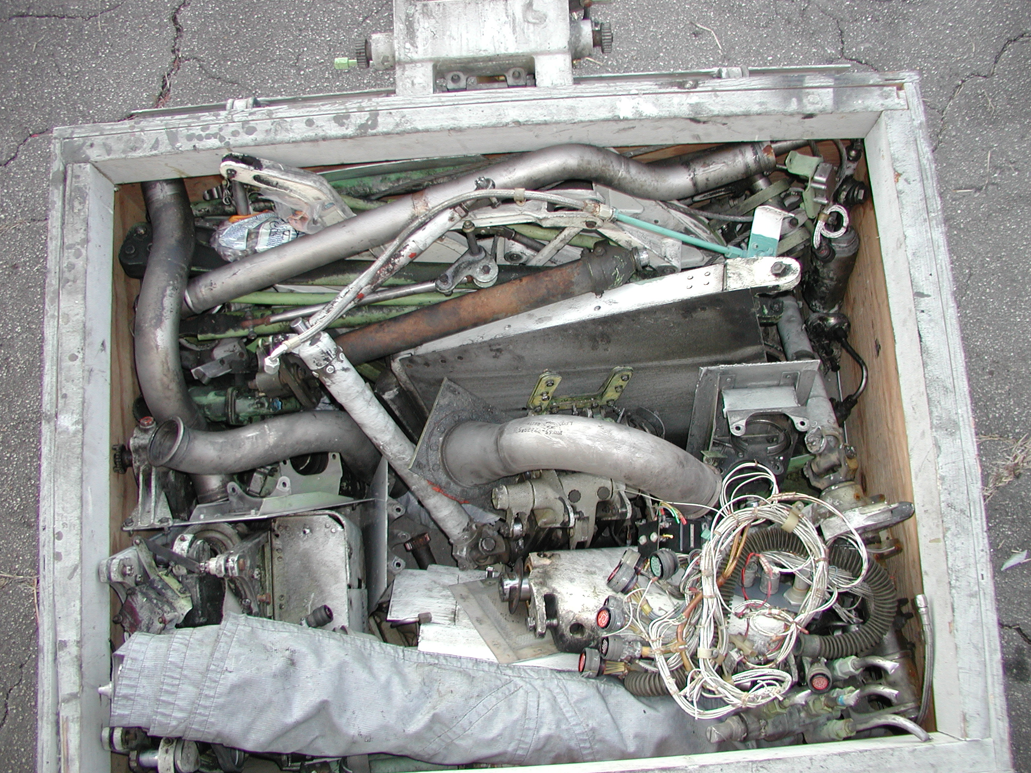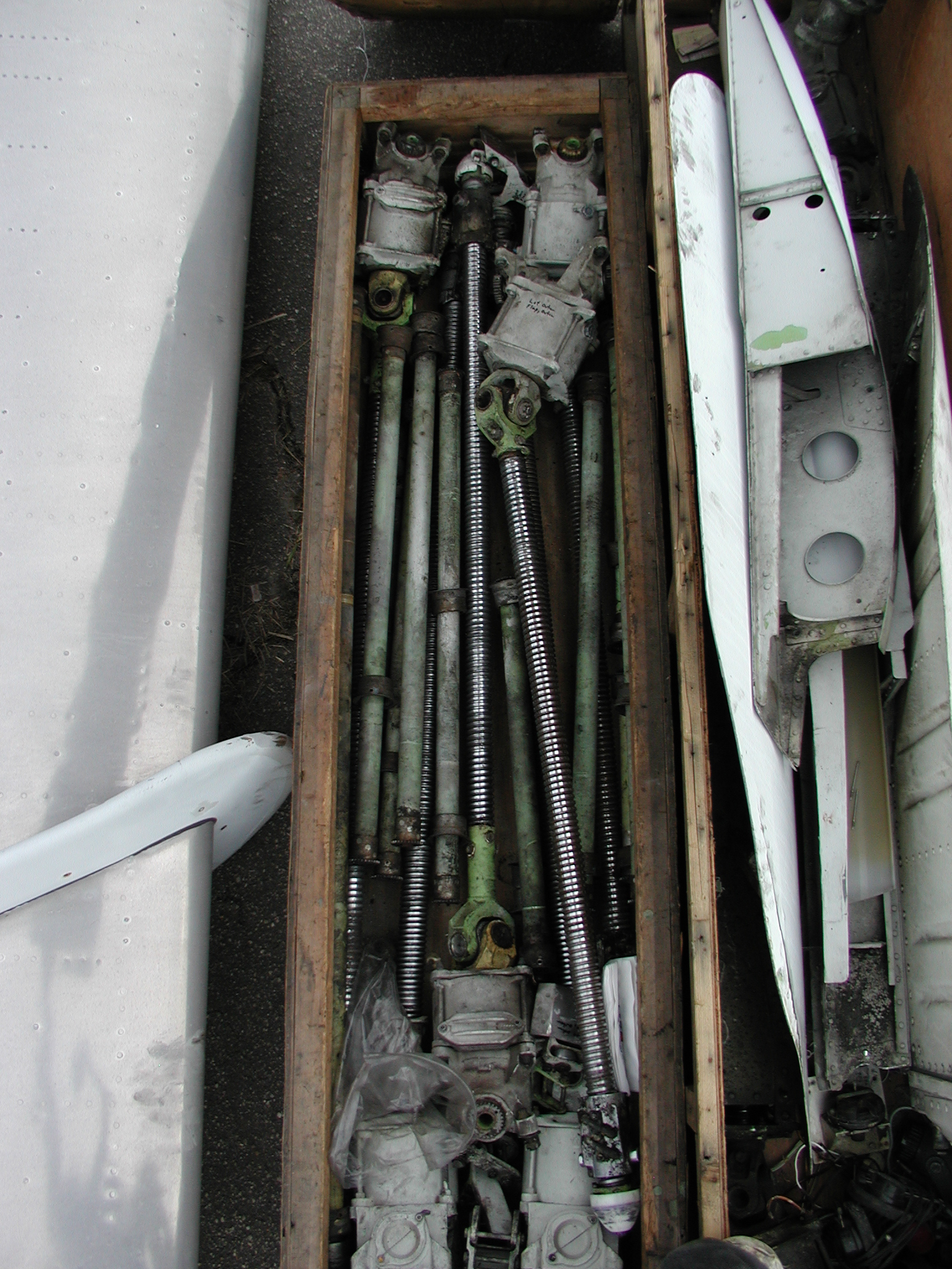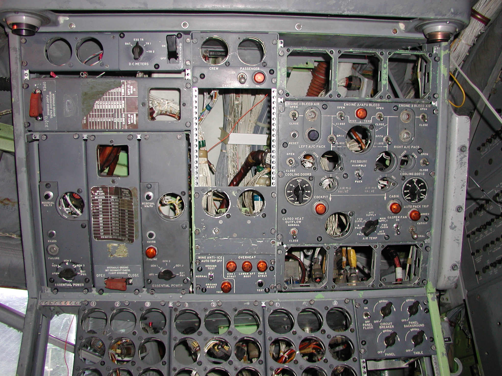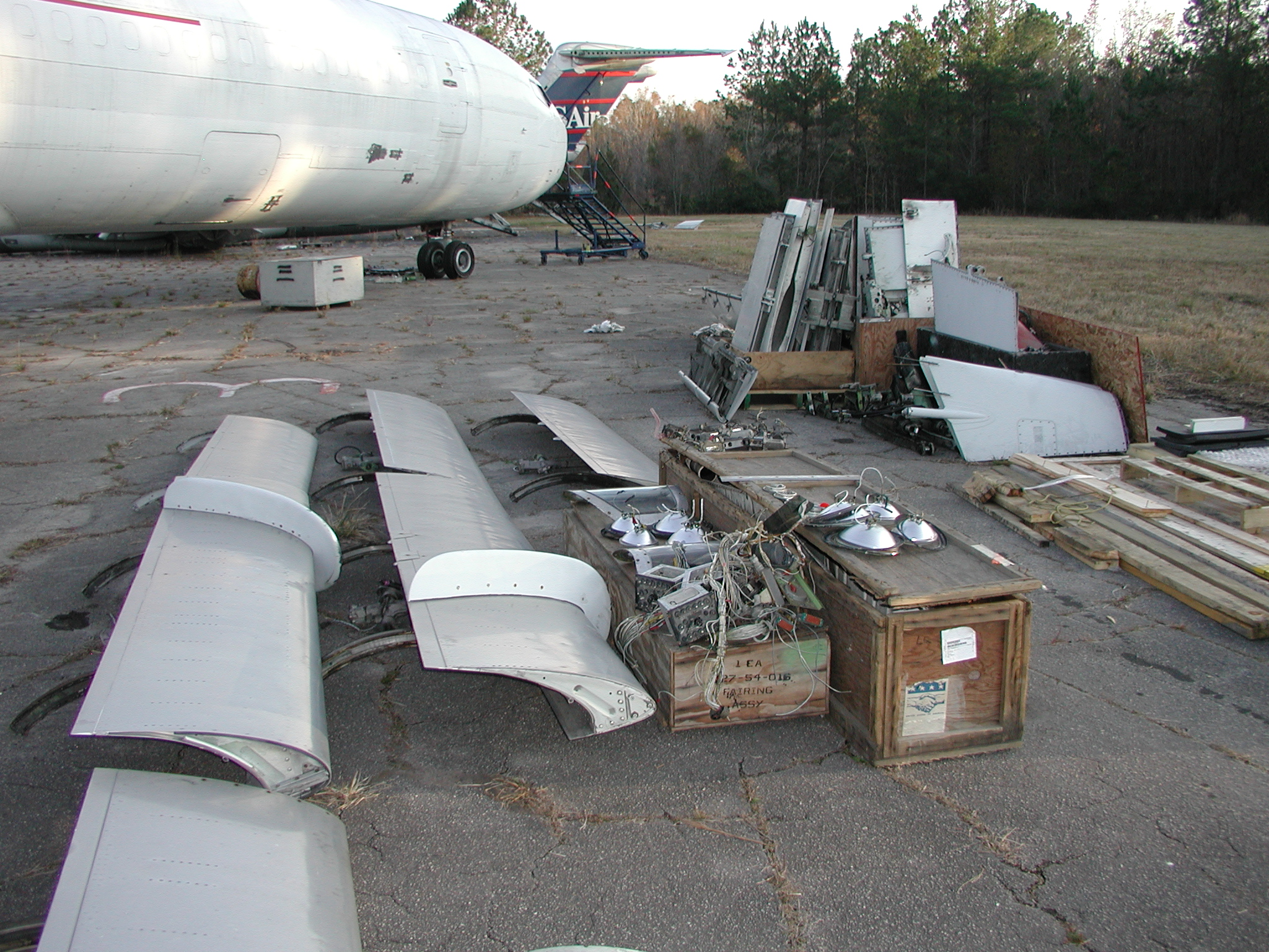 The freighter's wings were just fabulous - all the parts were intact and in excellent condition except that the Krueger flap actuators had been removed, as had the fuel connector collars (just the connection collars - the rest of the parts in the fuel service door were intact). The main gear door bays had been significantly dismantled though - the inner gear door actuators and the four flap drives had been removed, as had several other items. But the stabilator looked completely intact, though I could never get up to the area to verify that and remove parts. As for the cockpit, all the significant modules had been removed, but the windows were intact and in good shape, and there were some wiring harnesses and a few other parts of interest to me. The cockpit was a complicated and ever changing business issue though, so it wasn't a substantial focus for me.