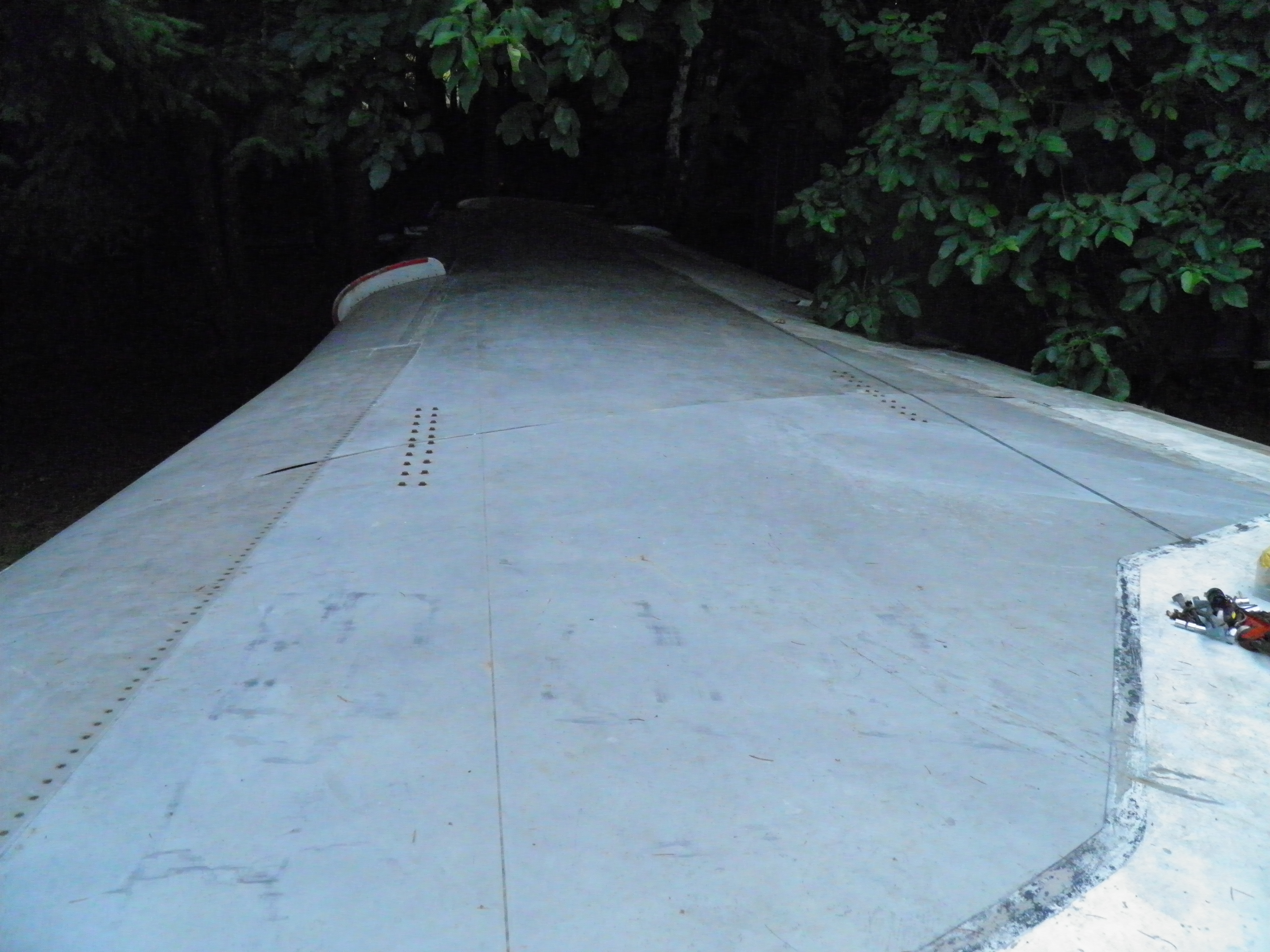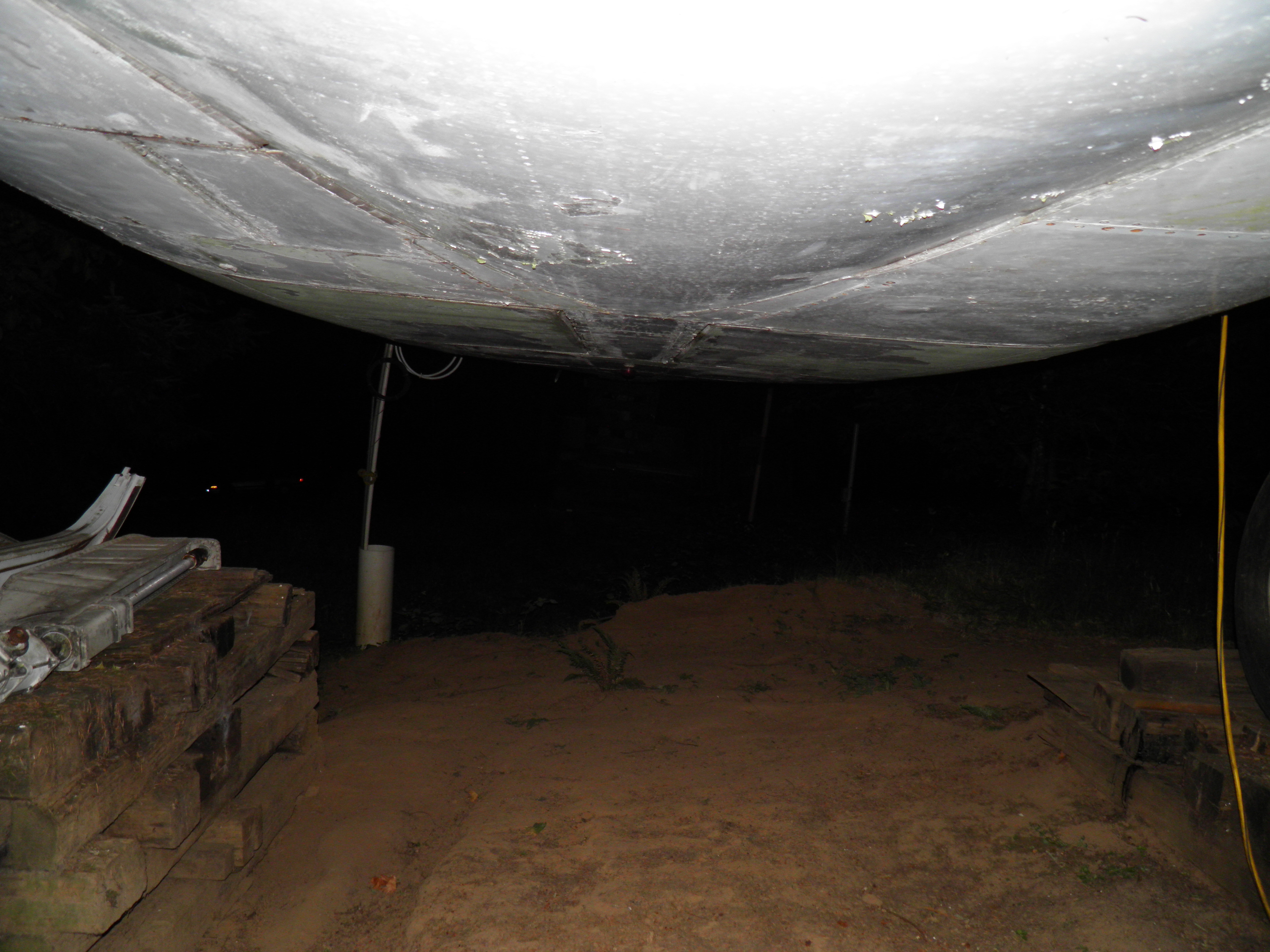 Additional substantial de-cluttering work occurred in the three gray storage vans located behind the right wing and in front of the aircraft. The two vans in front now contain only a very modest amount of material to be recycled or given away. And the vans themselves are ready to be disposed of. My hope is that they'll be acquired by a friend as soon as possible. If that proves impractical, they'll be sold or given away so as to clear the area to help beautify the aircraft's surroundings. If so the south one may be cut into two sections, with the shorter roughly three meter section moved to a position under the left wing stub to facilitate support of the aircraft during construction of a permanent left landing gear pillar with a bowl shaped top. I'm eager to complete these tasks as soon as possible...