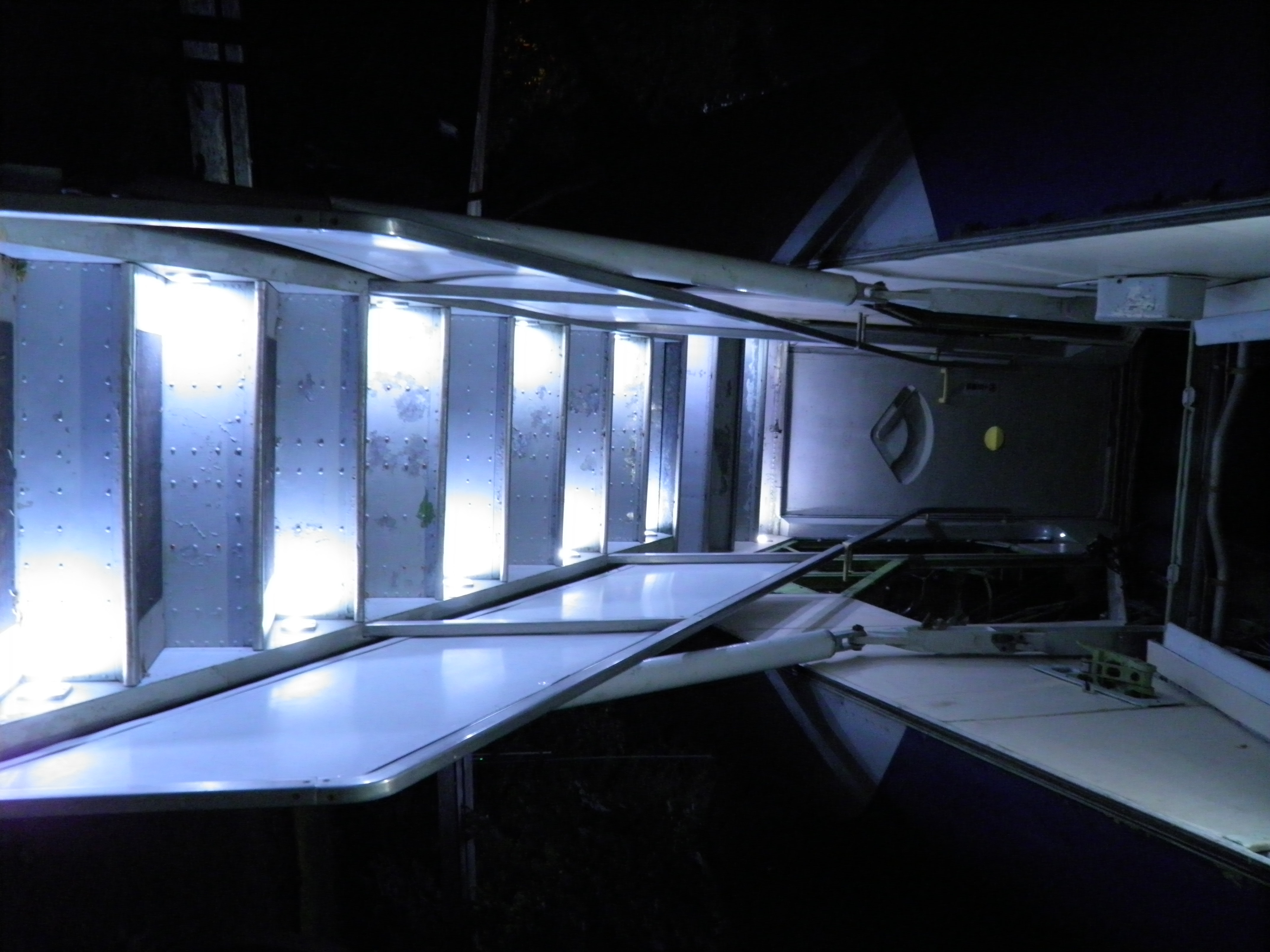 Numerous additional cabin window panels have been mounted, and some of the original cabin florescent light fixtures have been removed, and methods to cover their portion of the infrastructure underneath are being explored as you can see in a few of the images. The same conversion will be performed for the rest of the cabin later.