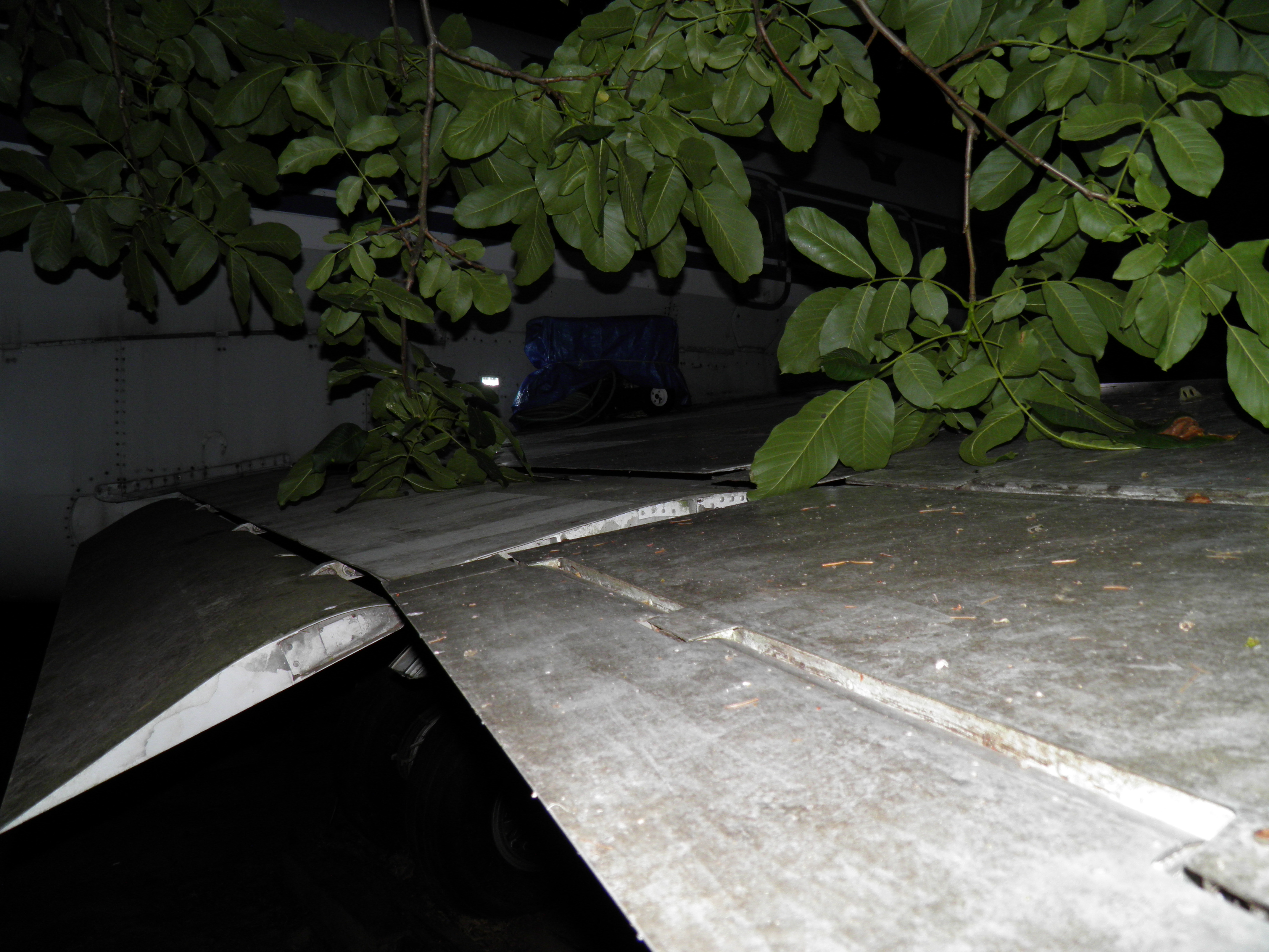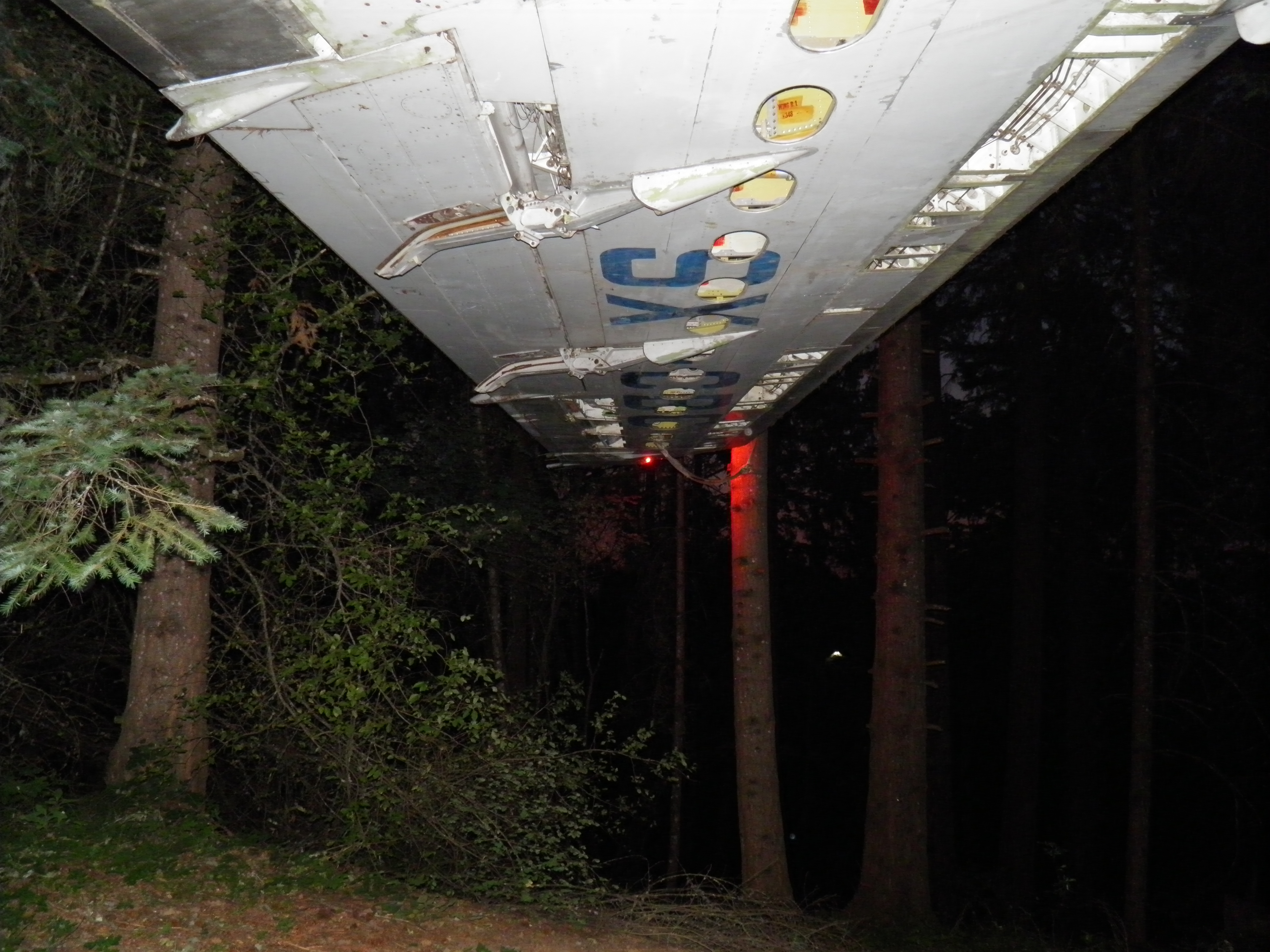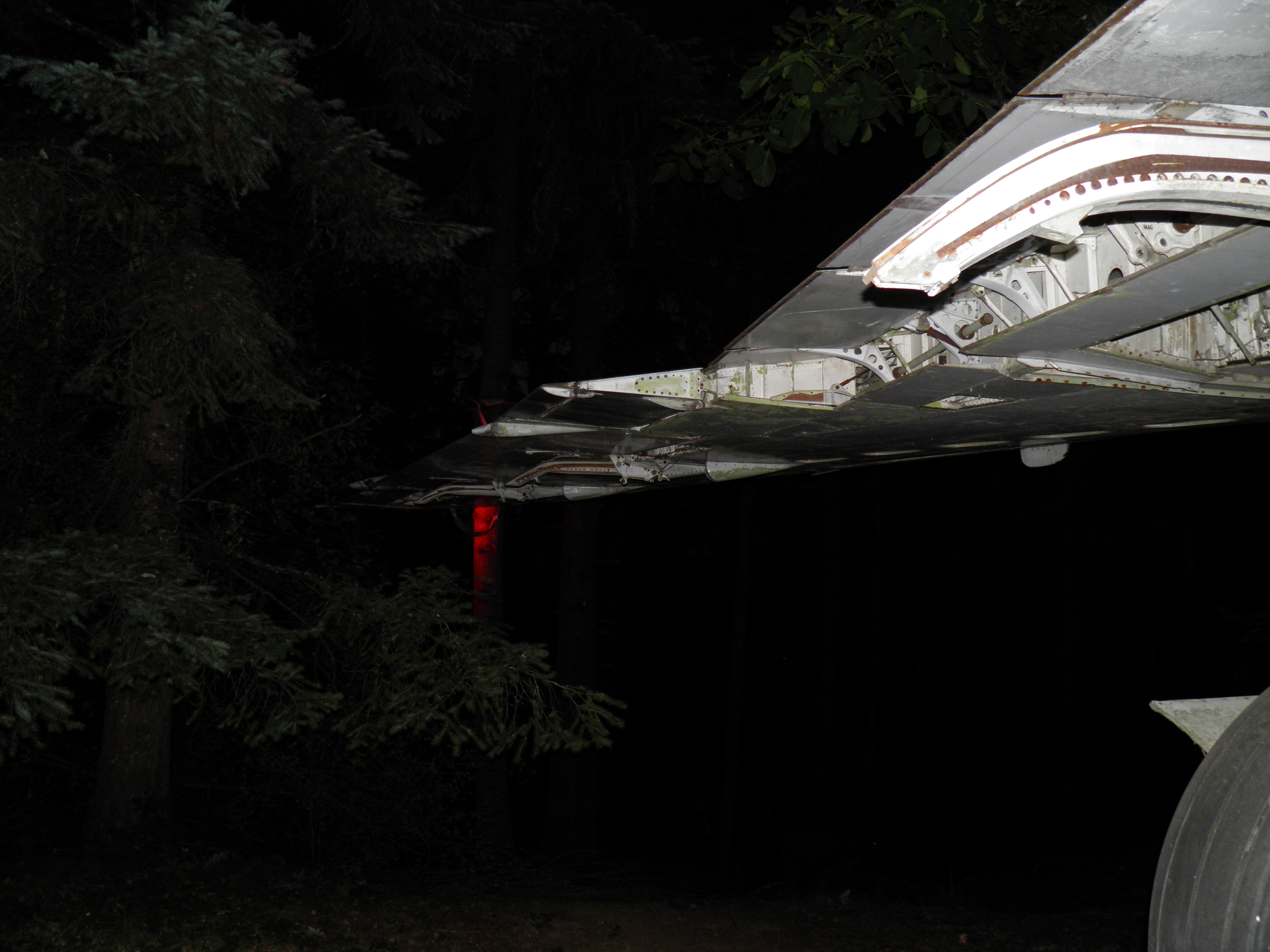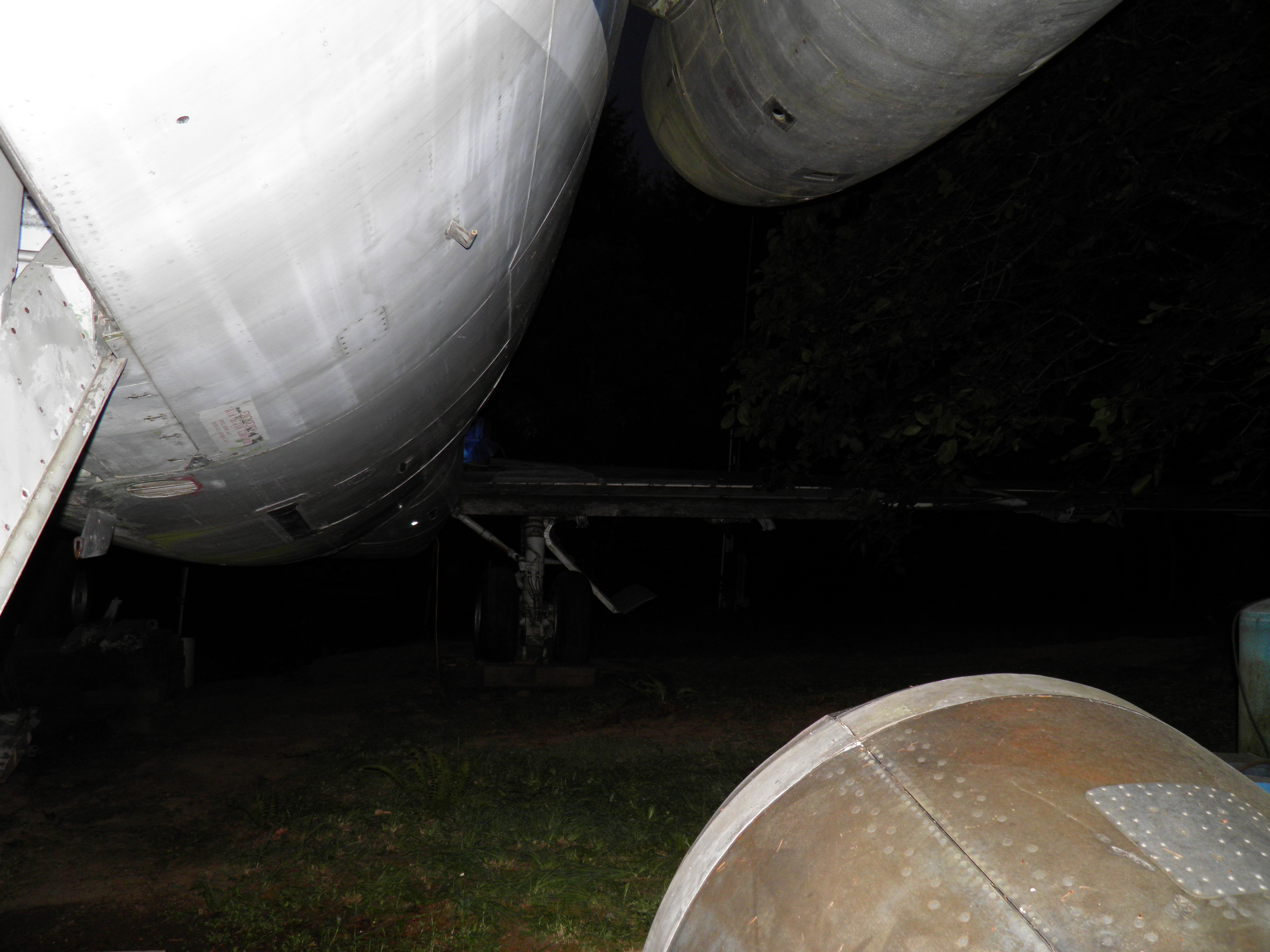 The third van, located behind the right wing, has been cleared of most material which was obsolete or unlikely to ever be utilized and thus is significantly lighter. I plan to move the entire van to a new location near the west border of my property where it'll be essentially out of sight of the aircraft, immersed in mature Douglas Fir trees. This will be a big task since, even though significantly lighter now, the van is still massive and thus nontrivial to move. An old truck trailer will probably be required, and material will likely be cleared from the van in preparation for the move, then material moved back into the van after the move. (A material swap will likely be involved at that time - personal domestic items will probably be moved into my aircraft, and currently unused aircraft components then moved into the van.) The van will likely permanently remain on whatever wheel structure is utilized in part to provide improved earthquake resistance, but also to facilitate any future repositioning which might be desired. I hope to complete this task as soon as possible too...