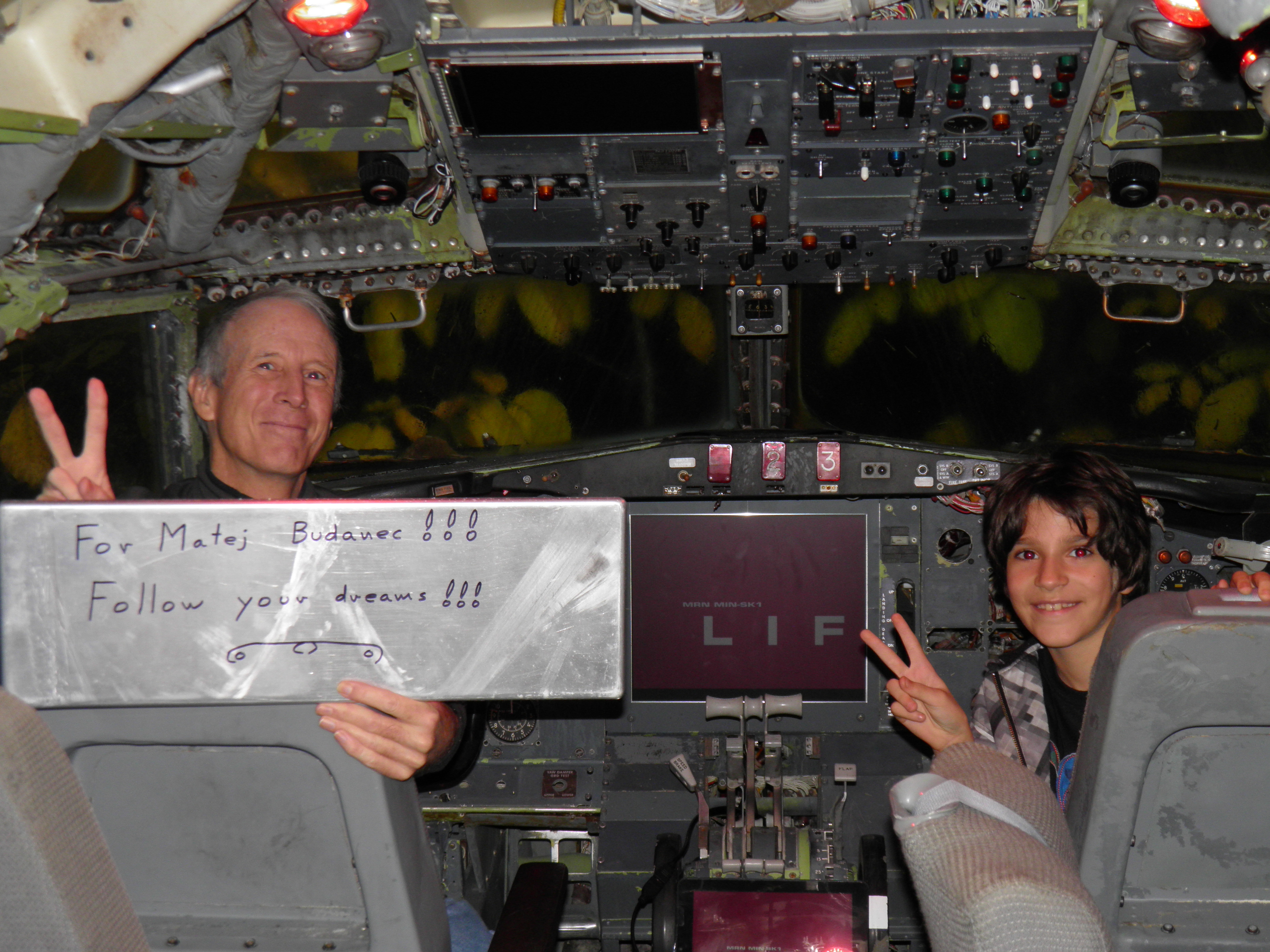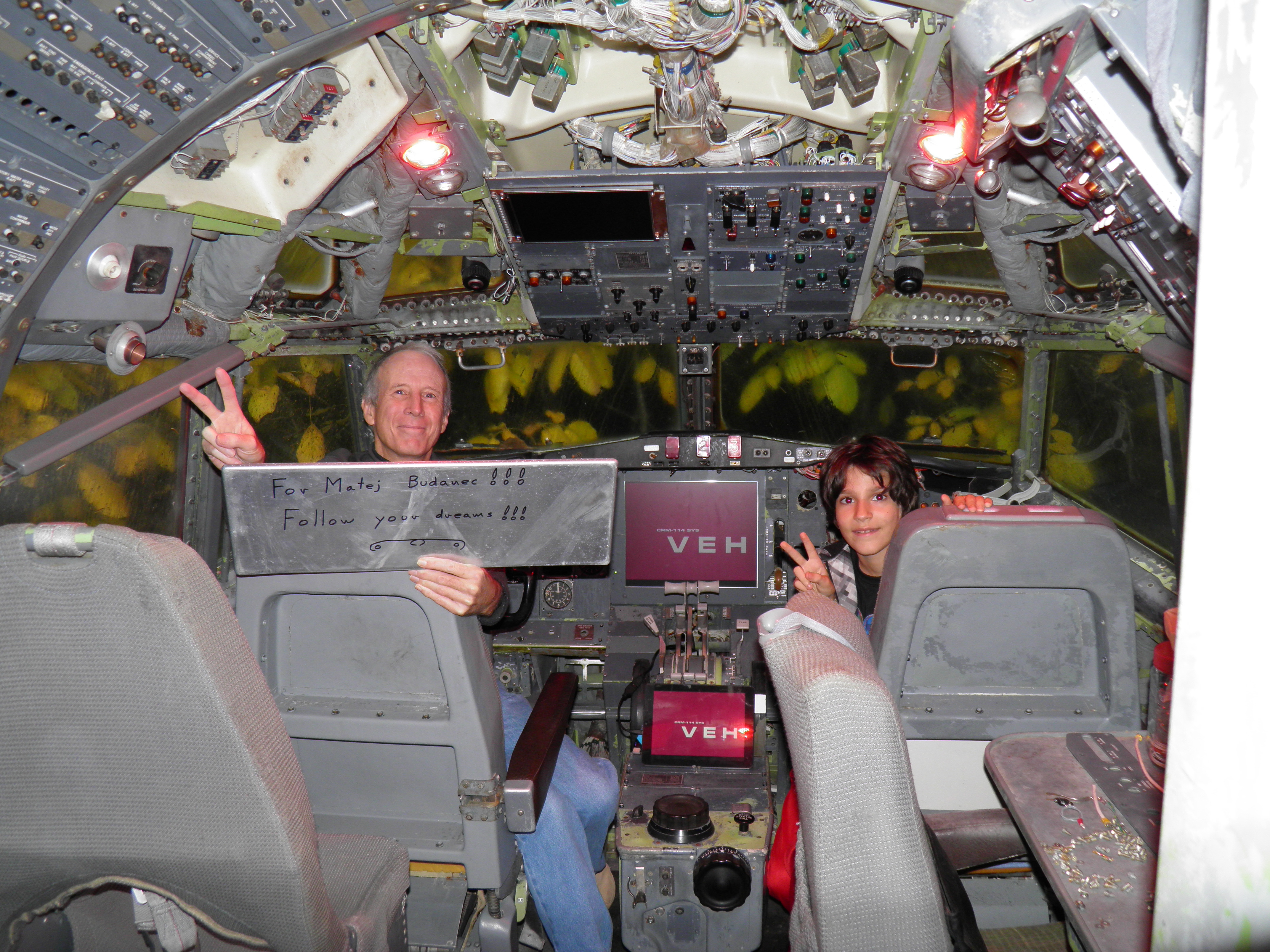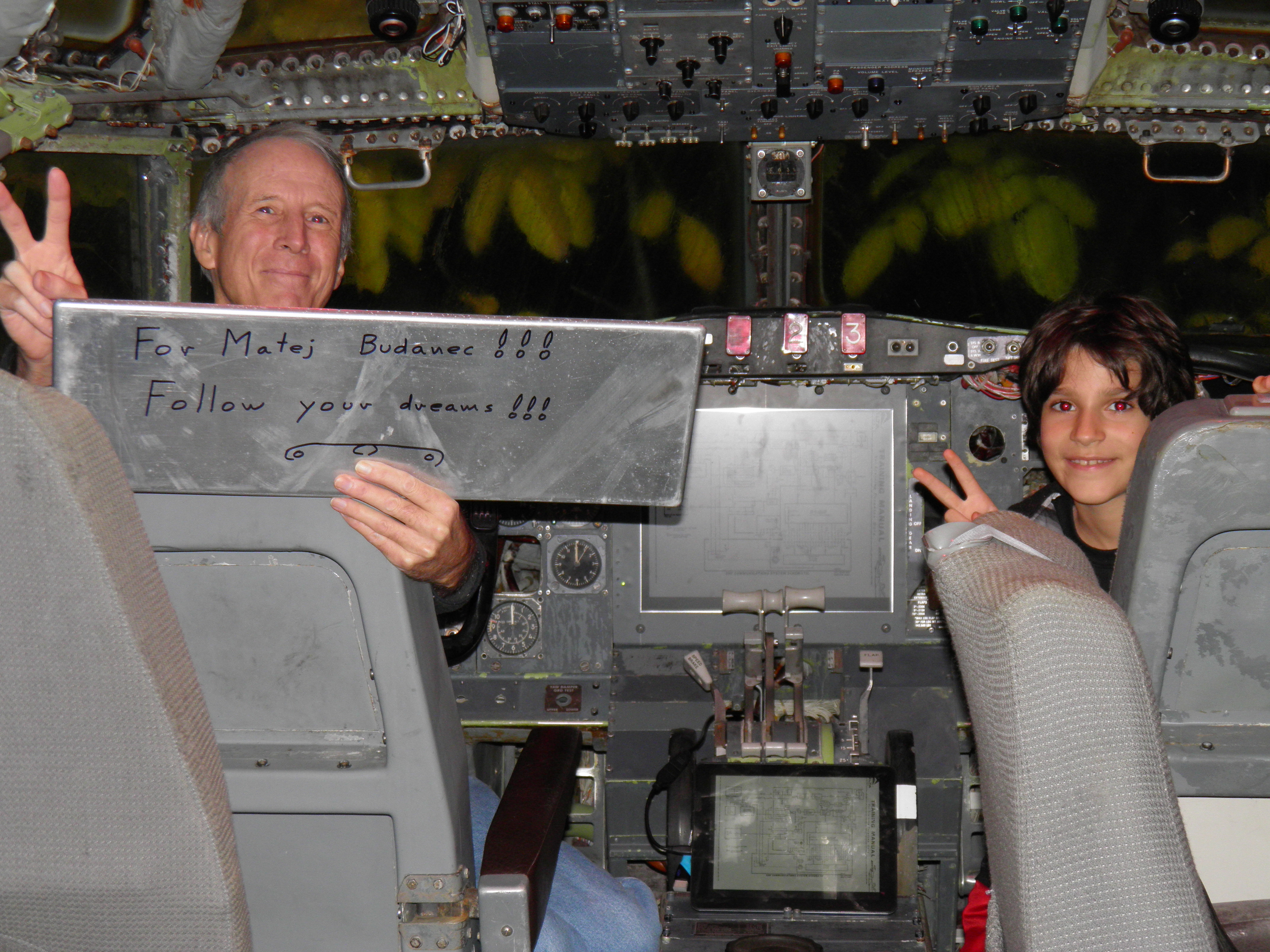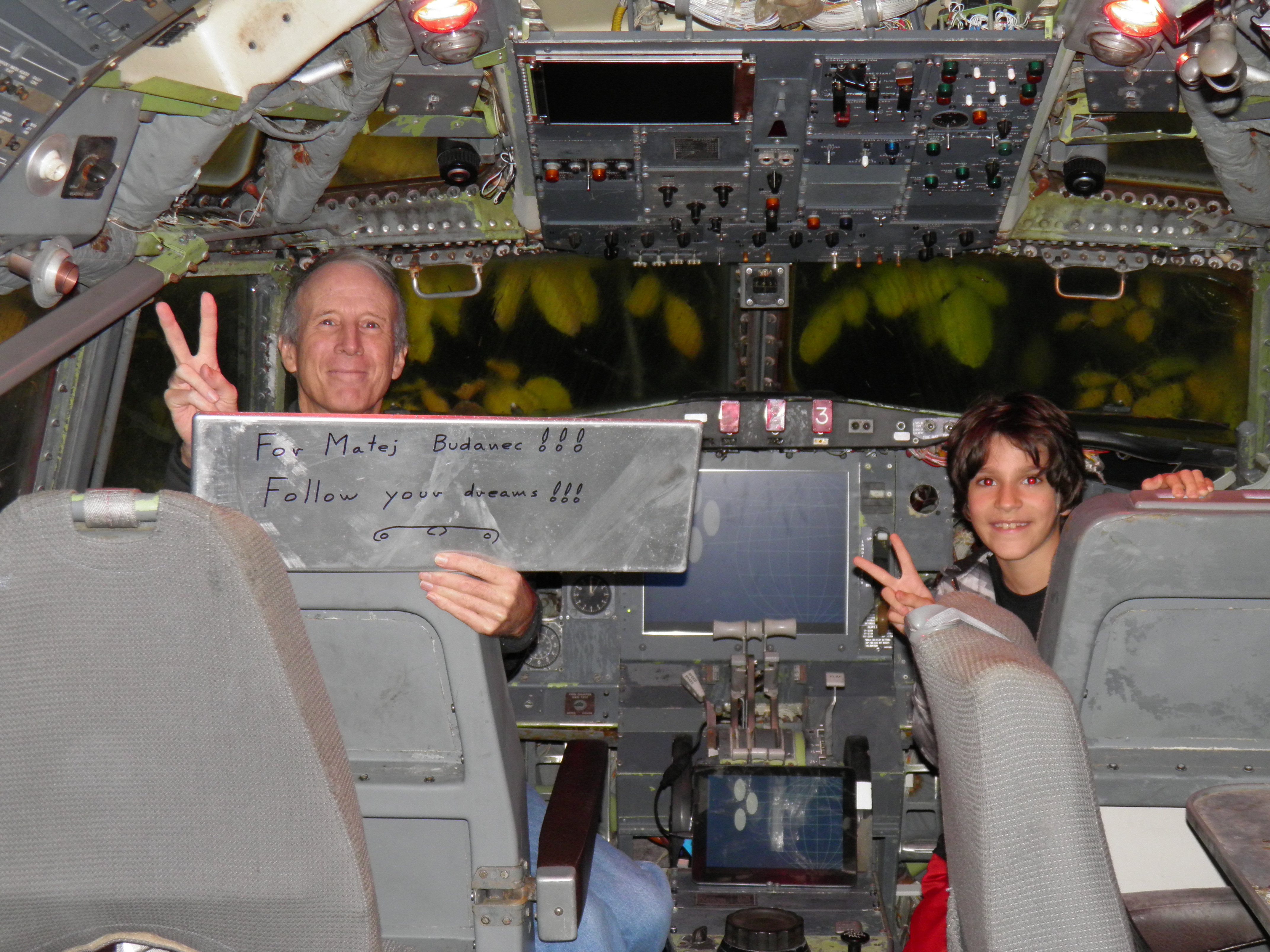 Most of the images below were very hastily captured on two separate dates during 2015, early July and late November. Many images are essentially identical - sorry for the substantial array of redundancies. Also, night photography and other limitations were forced by intense time constraints, so some aircraft systems which should have been on to make the images much more interesting and appealing were instead off, and many of the images are poor in quality. And in many images the main cabin lights were inoperable at the time. Again, sorry... Some are images of me and new young friend Toby, occasionally with a personal message for keenly interested project follower Matej Nebitno. Those and two or three daylight outdoor images were captured by Toby's father Chris (many thanks Chris).
