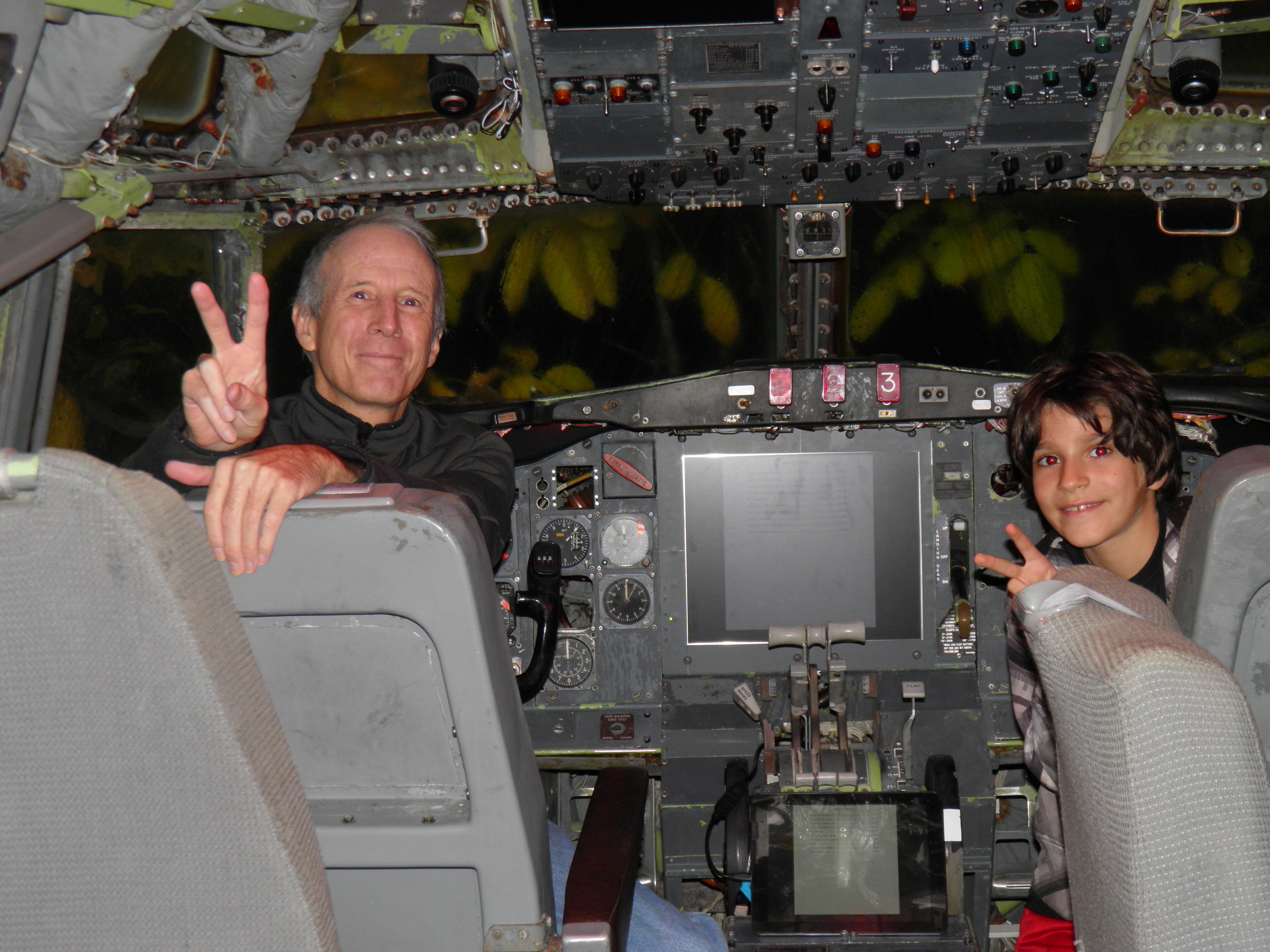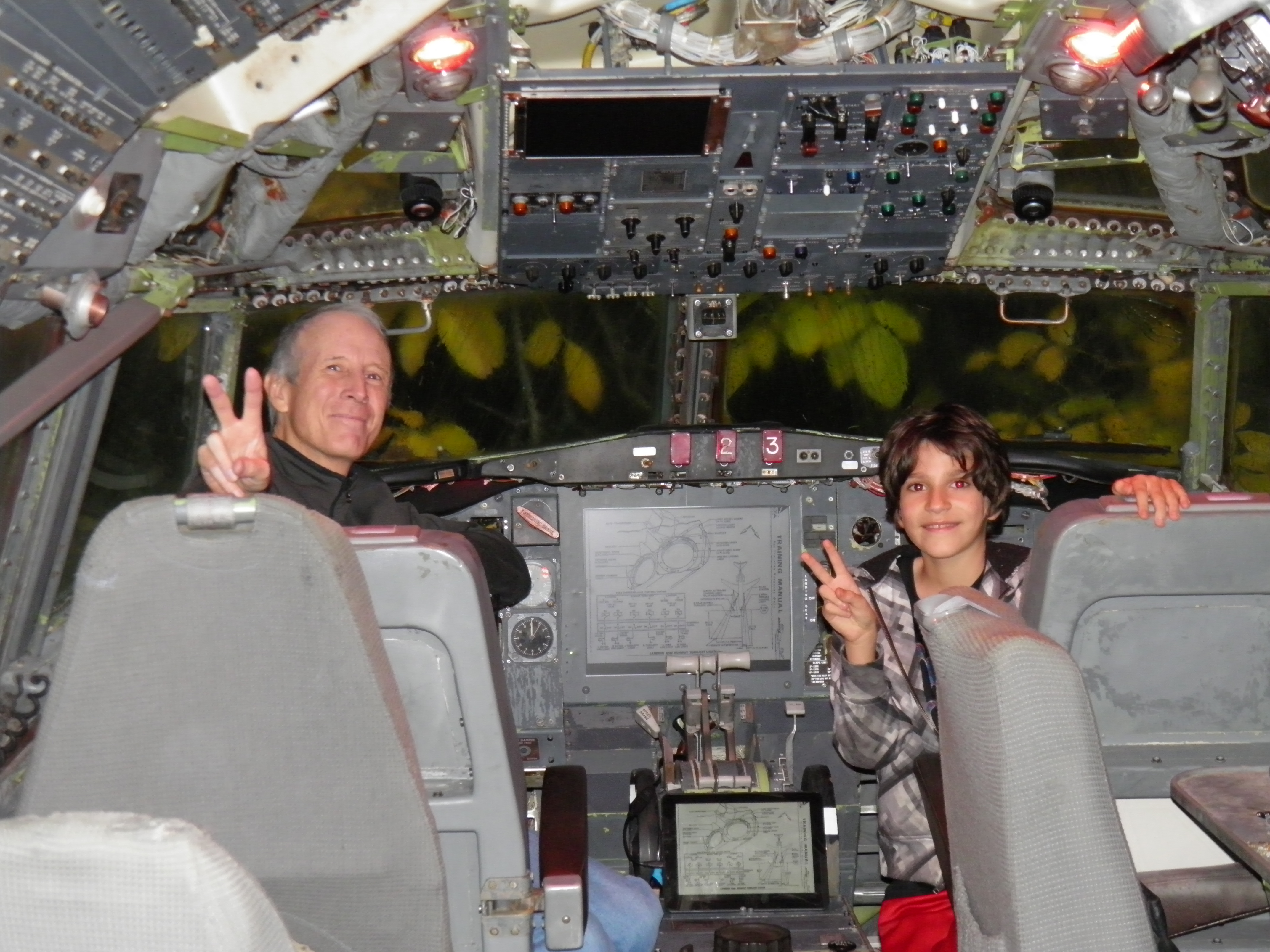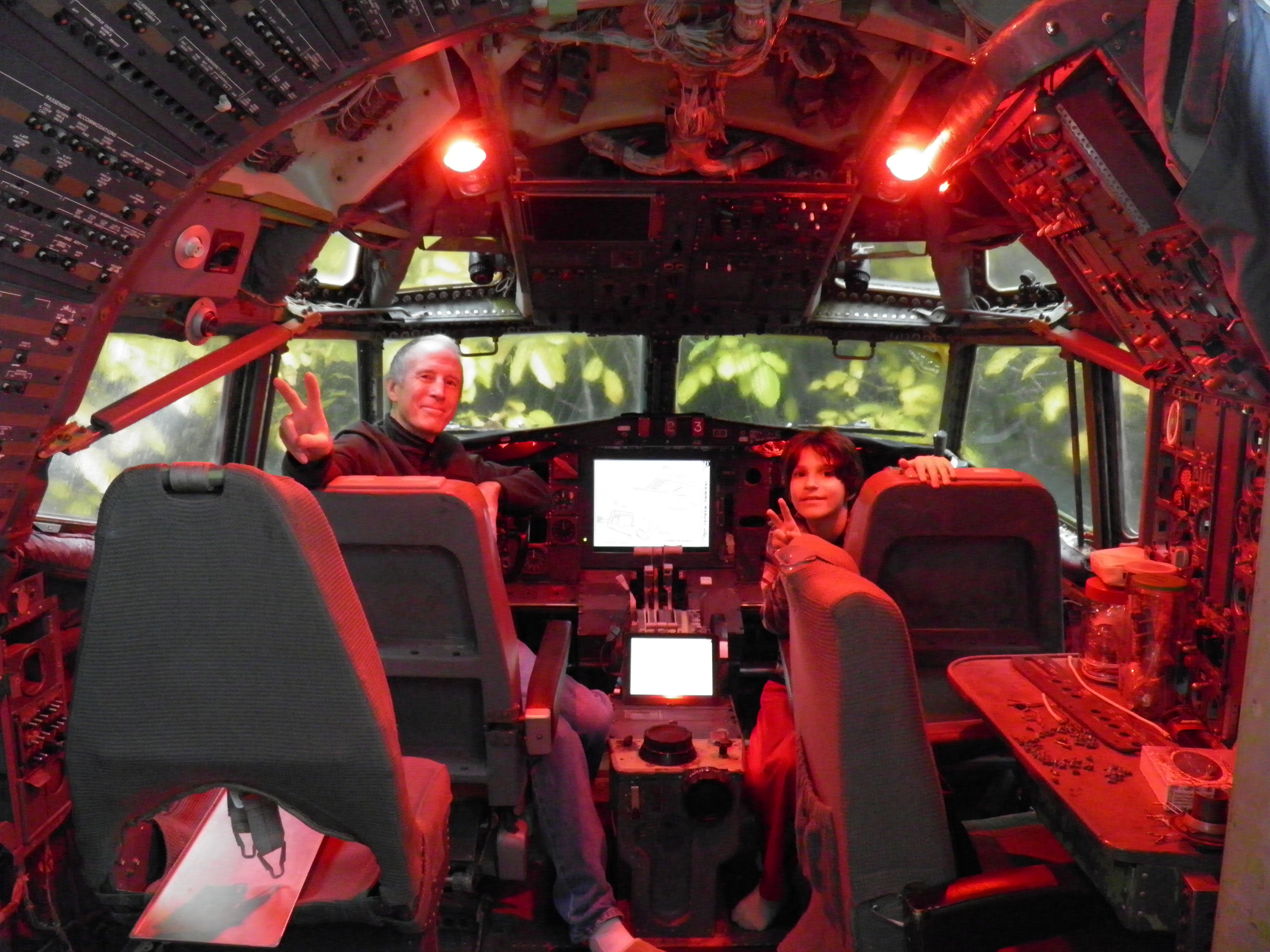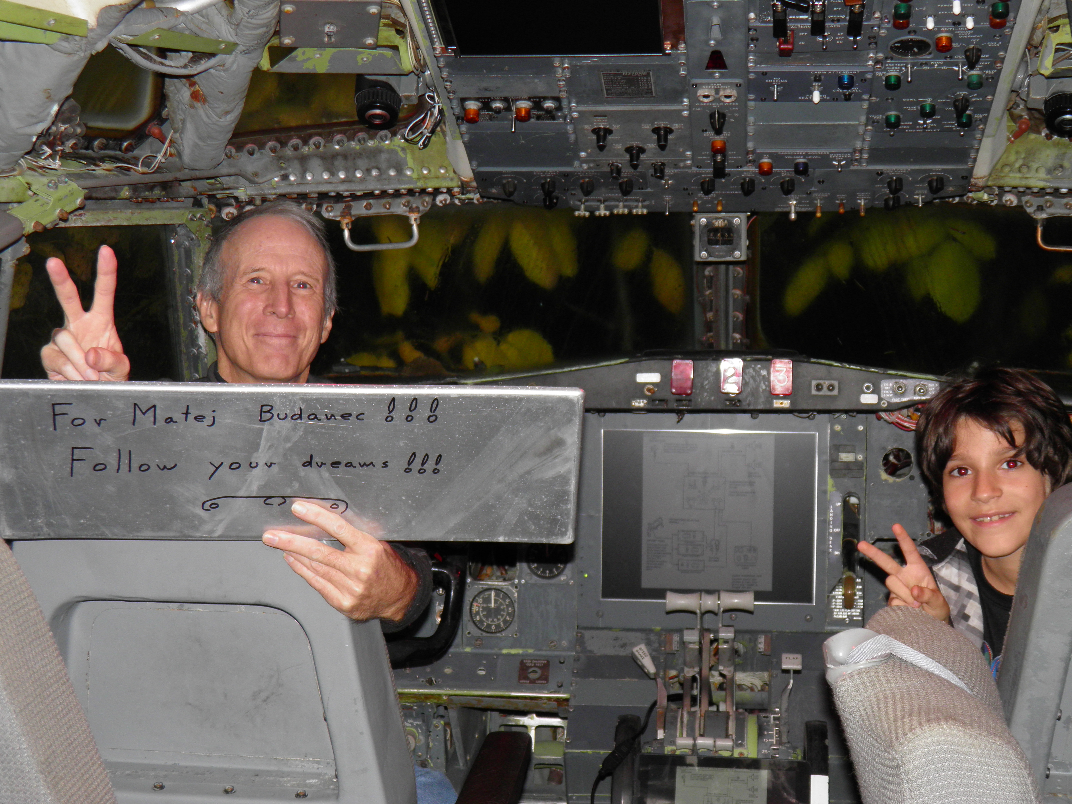 Most of the images below were very hastily captured on two separate dates during 2015, early July and late November. Many images are essentially identical - sorry for the substantial array of redundancies. Also, night photography and other limitations were forced by intense time constraints, so some aircraft systems which should have been on to make the images much more interesting and appealing were instead off, and many of the images are poor in quality. And in many images the main cabin lights were inoperable at the time. Again, sorry... Some are images of me and new young friend Toby, occasionally with a personal message for keenly interested project follower Matej Nebitno. Those and two or three daylight outdoor images were captured by Toby's father Chris (many thanks Chris).