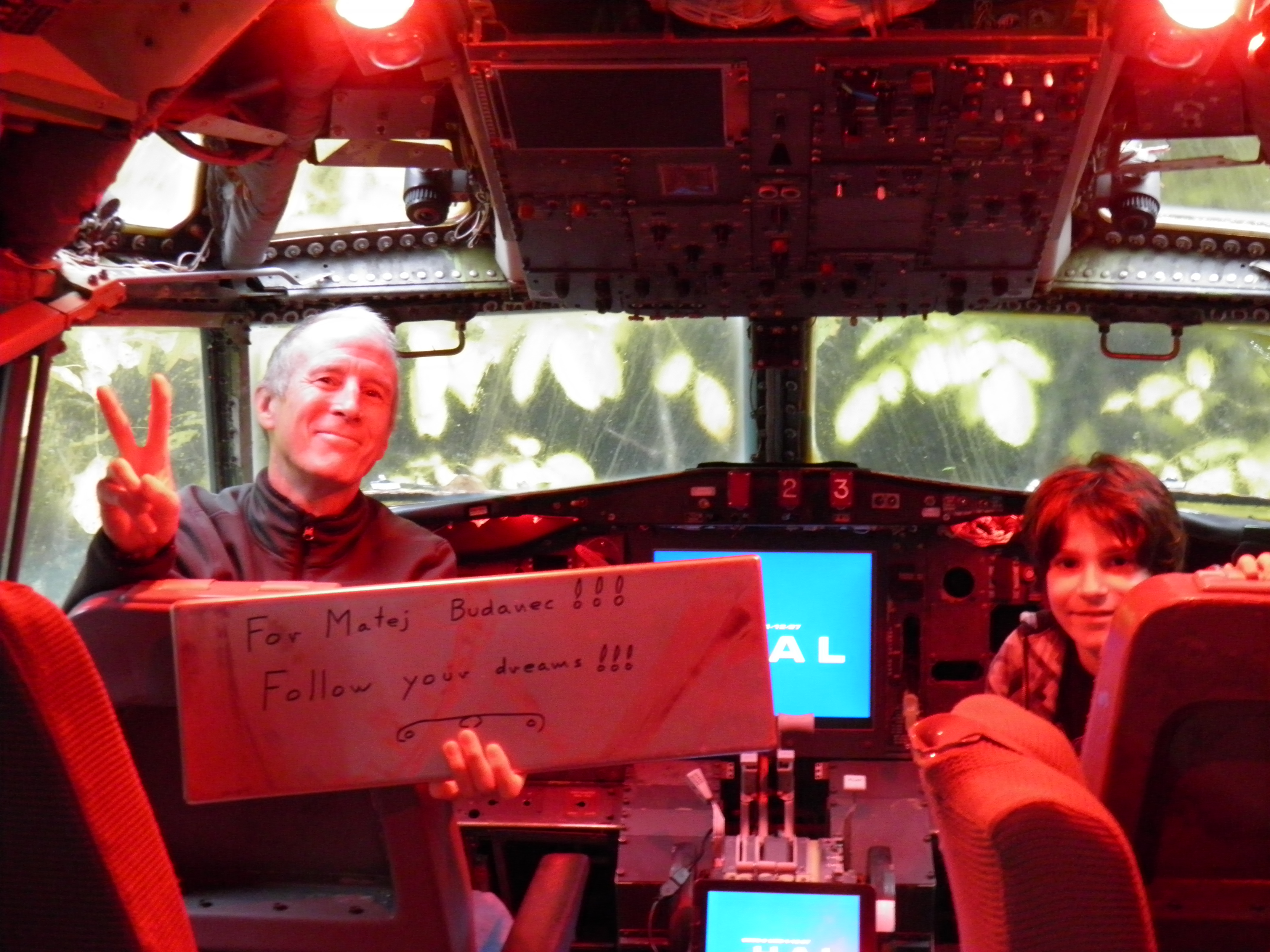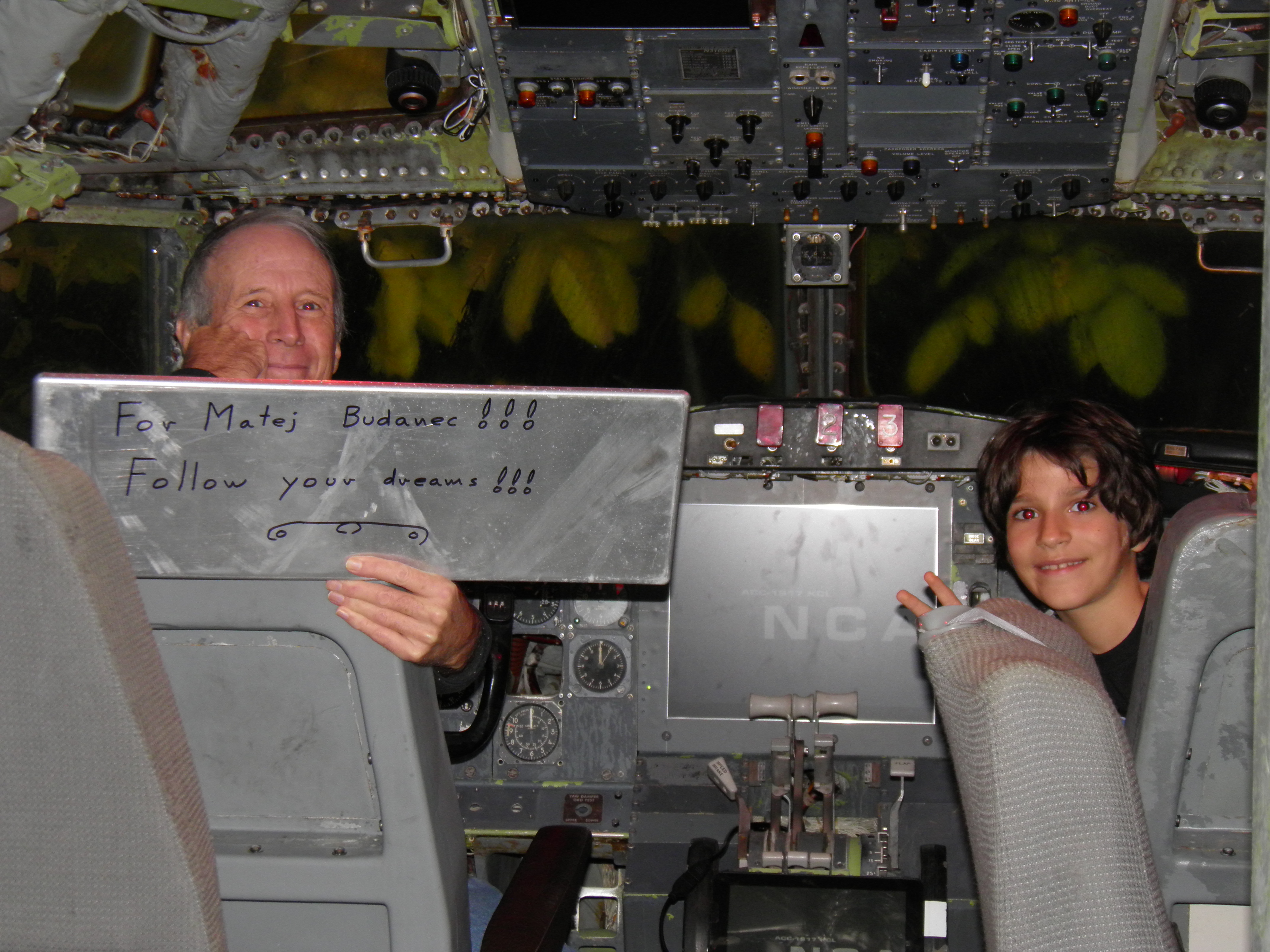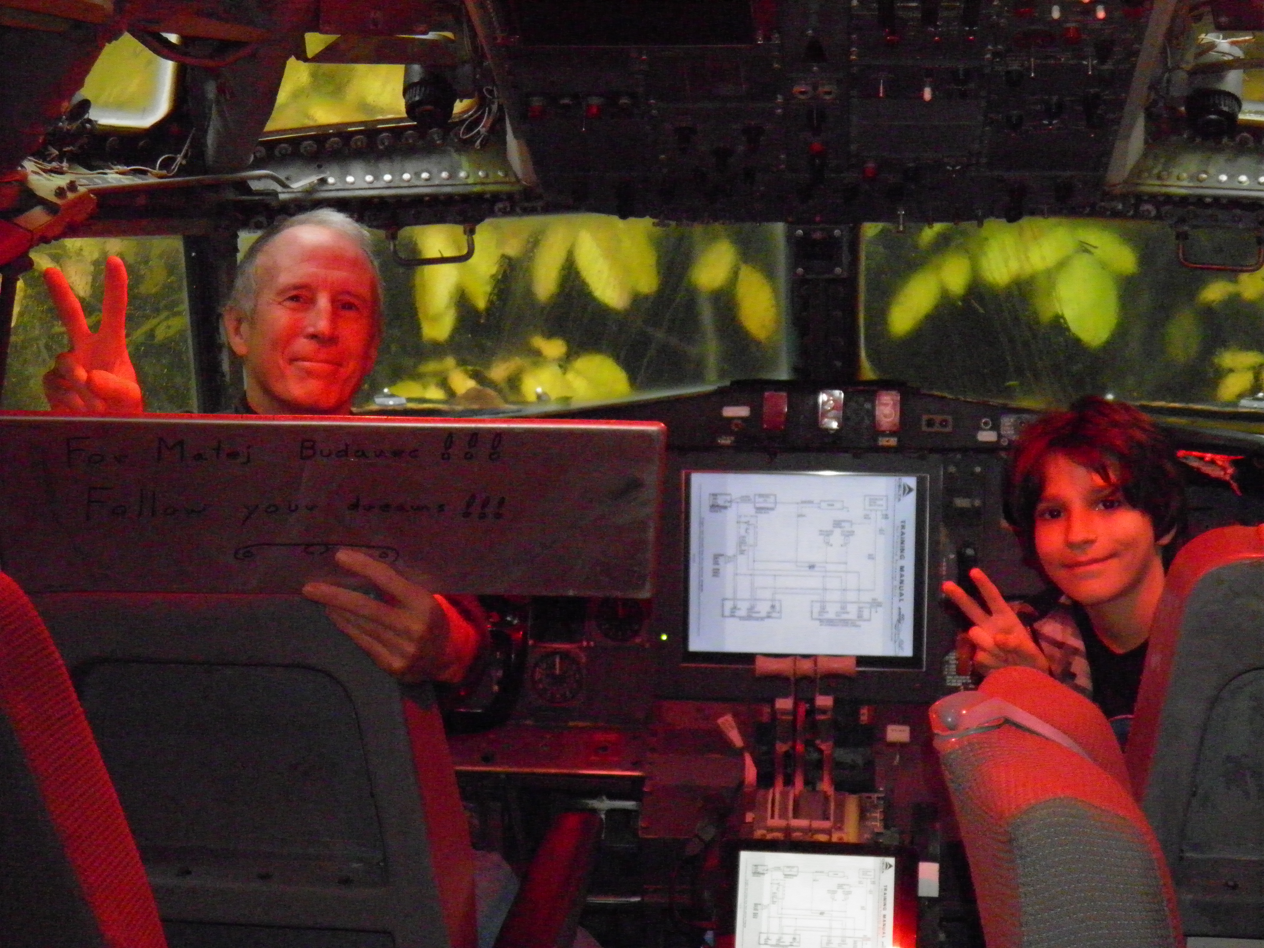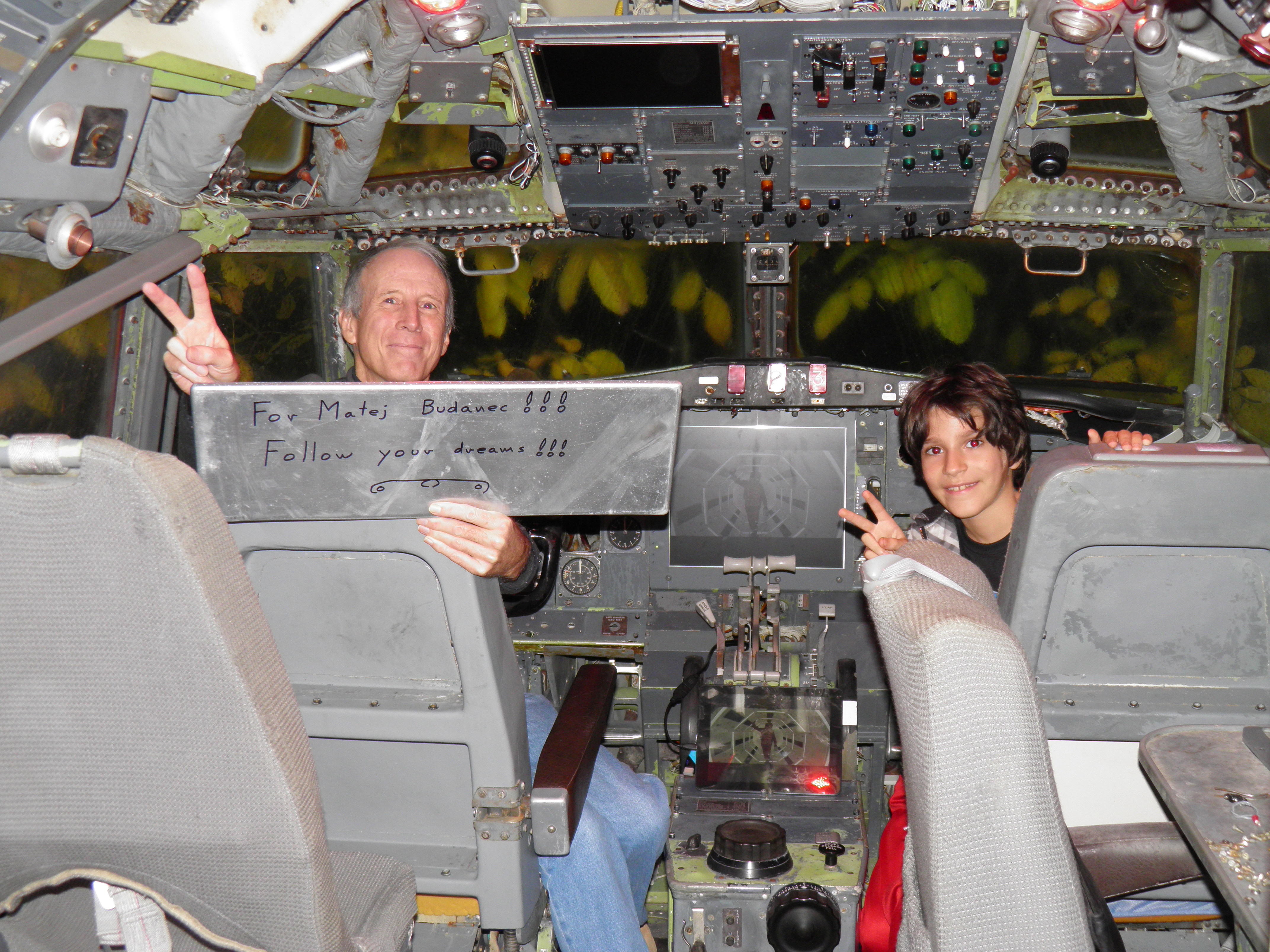 Most of the images below were very hastily captured on two separate dates during 2015, early July and late November. Many images are essentially identical - sorry for the substantial array of redundancies. Also, night photography and other limitations were forced by intense time constraints, so some aircraft systems which should have been on to make the images much more interesting and appealing were instead off, and many of the images are poor in quality. And in many images the main cabin lights were inoperable at the time. Again, sorry... Some are images of me and new young friend Toby, occasionally with a personal message for keenly interested project follower Matej Nebitno. Those and two or three daylight outdoor images were captured by Toby's father Chris (many thanks Chris).