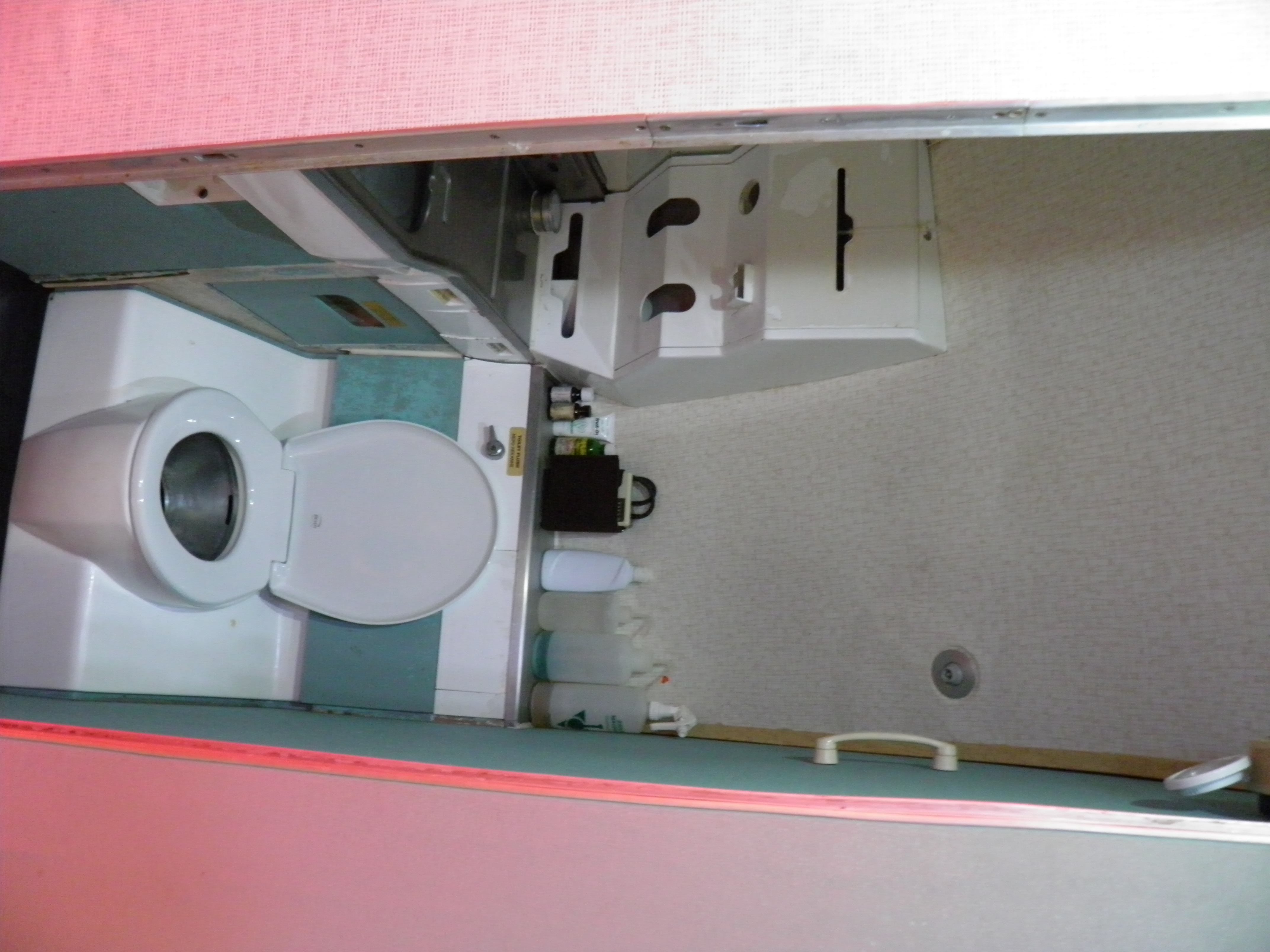 Both aft lavatory toilets are now fully functional, but hot water still needs to be connected to the wash basins (cold is connected), a light fixture in the right aft lavatory repaired, and the mirror light fixtures in both aft lavatories need to be converted from florescent to LED based illumination. Some wall or door panel structures and their color treatment need to be repaired or refined as well.