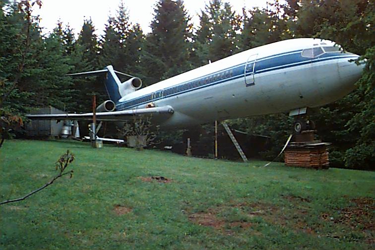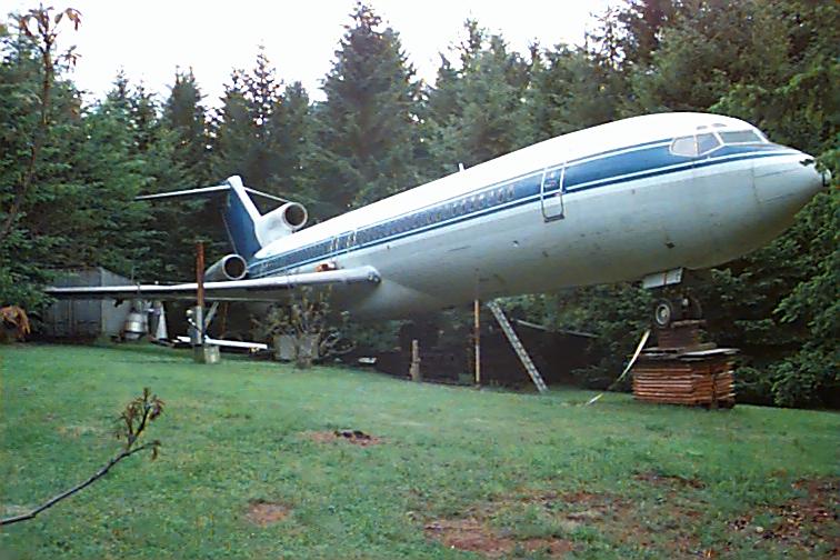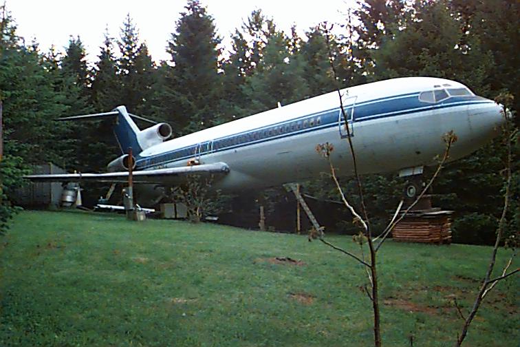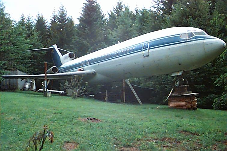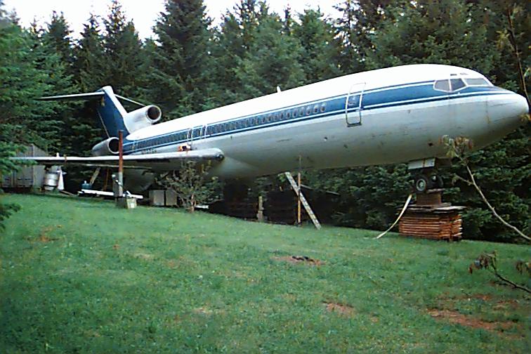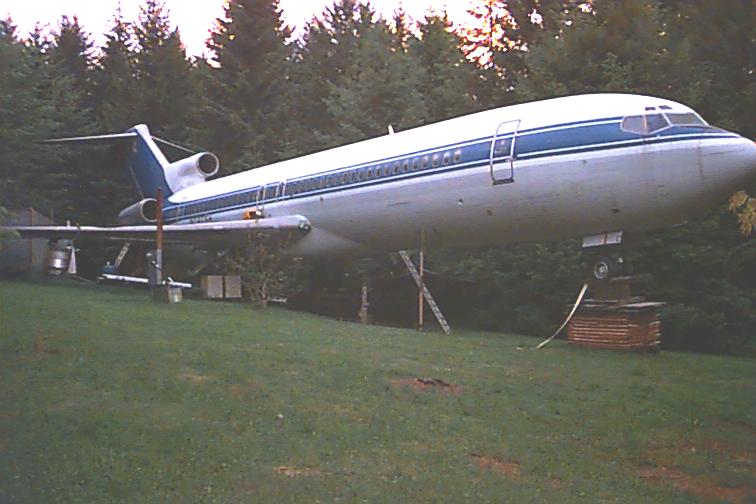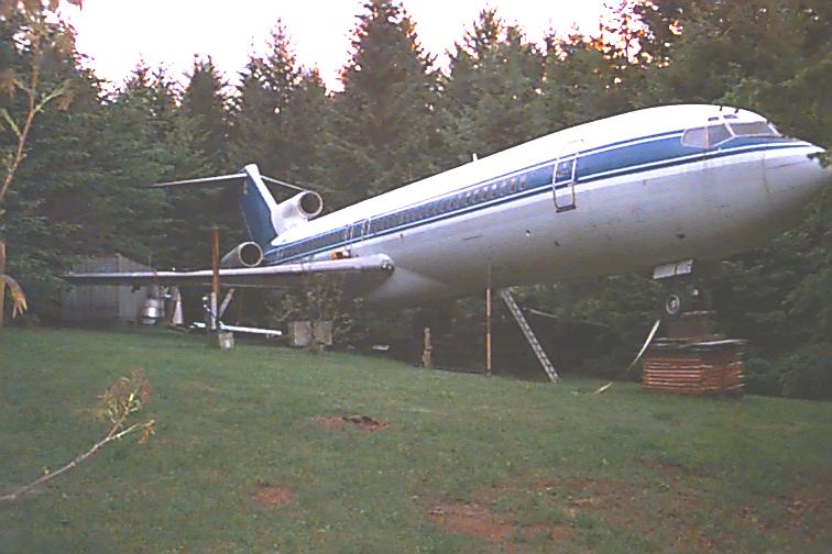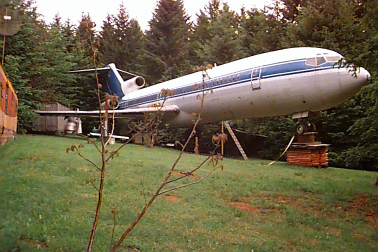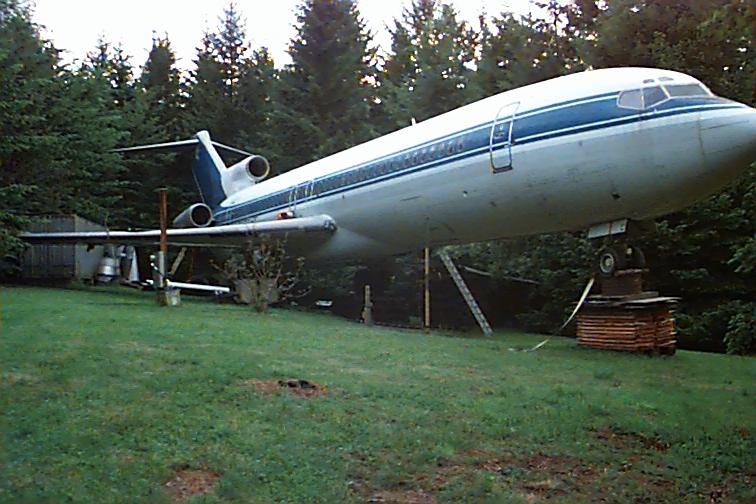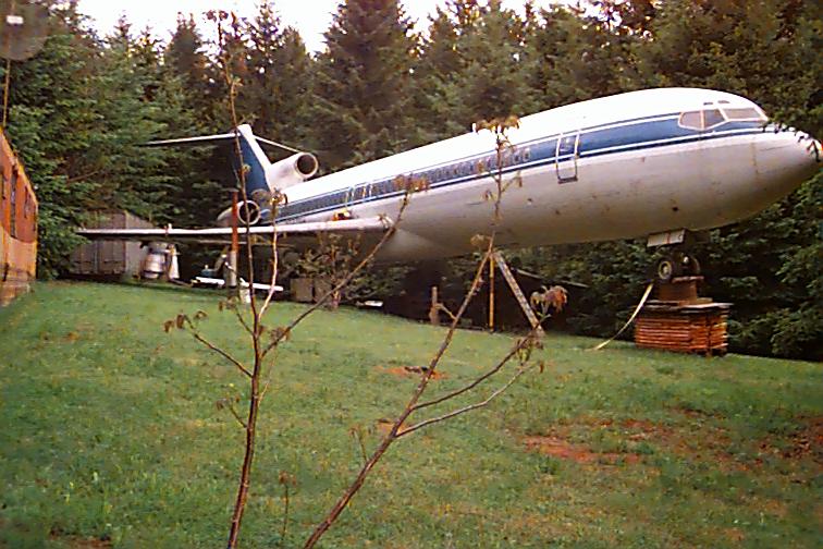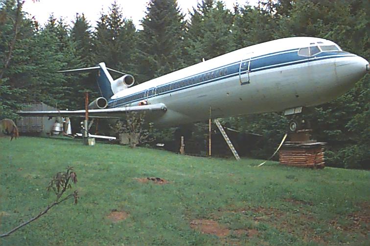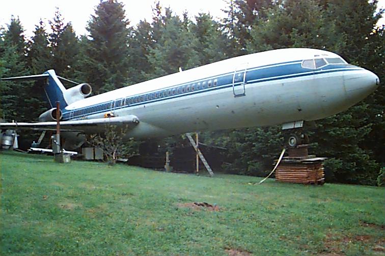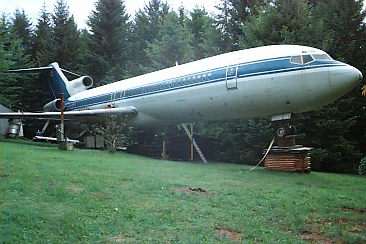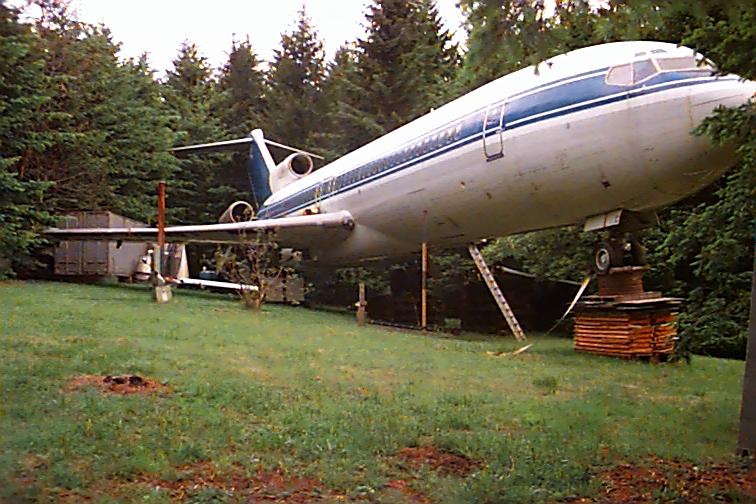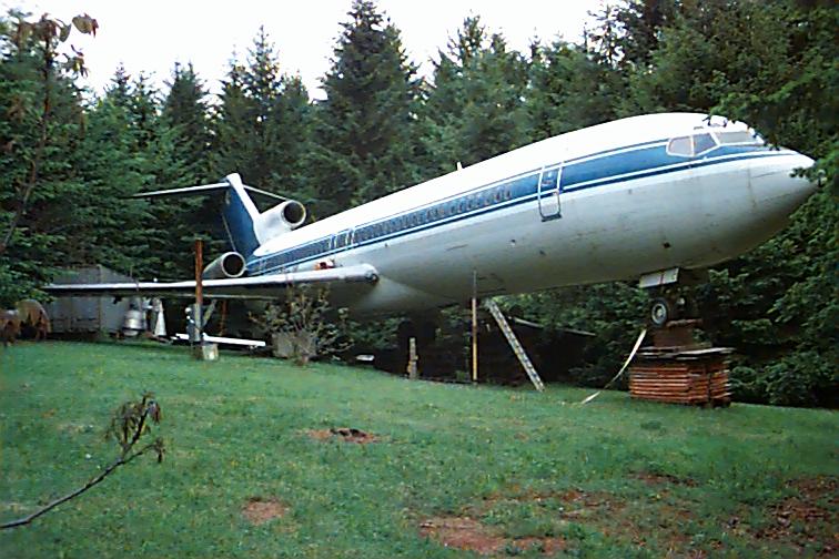The aircraft looks more rough in these images than it does in reality, as best I can judge. Extensive pressure washing has caused a lot of paint removal, most of which comes off as chips, leaving surfaces looking like they're corroded in these images, even though in most cases they aren't. Paint loss is a necessary evil at this time. In fact, I'd prefer that all the overcoat paint (as opposed to the underlying corrosion preventative primer) come off when pressure washed, but that's not it's nature. When the more important things are completed, and I've moved in, I'll attend to beautification with a new coating of some sort - hopefully something much longer lasting than traditional paint. Maybe I can eventually get it to look like the Braniff 727 in the first image, which was obviously a new aircraft at the time the image was captured, right out of the paint shop (courtesy Boeing).