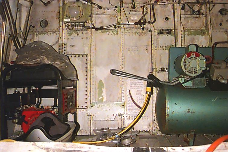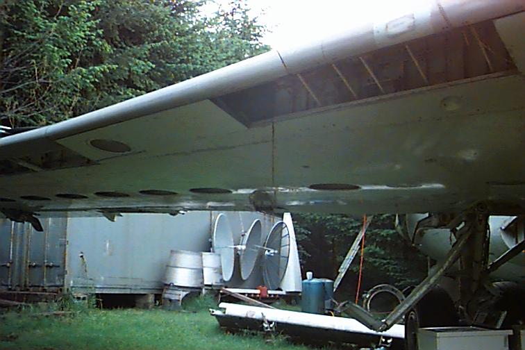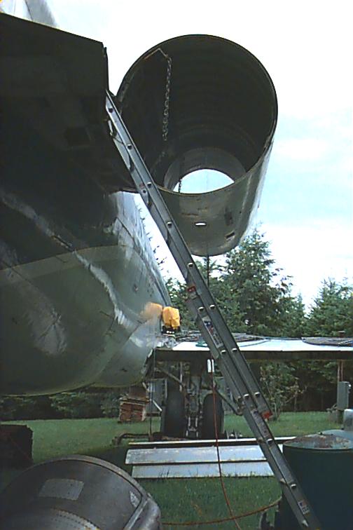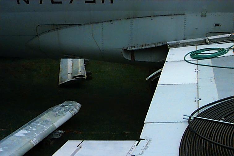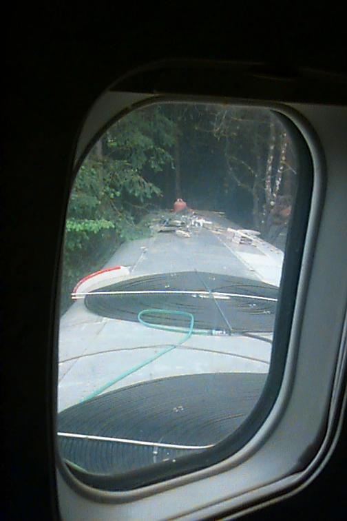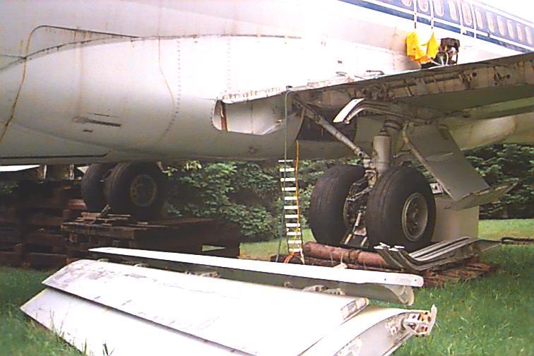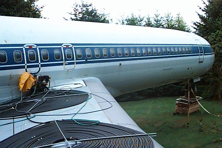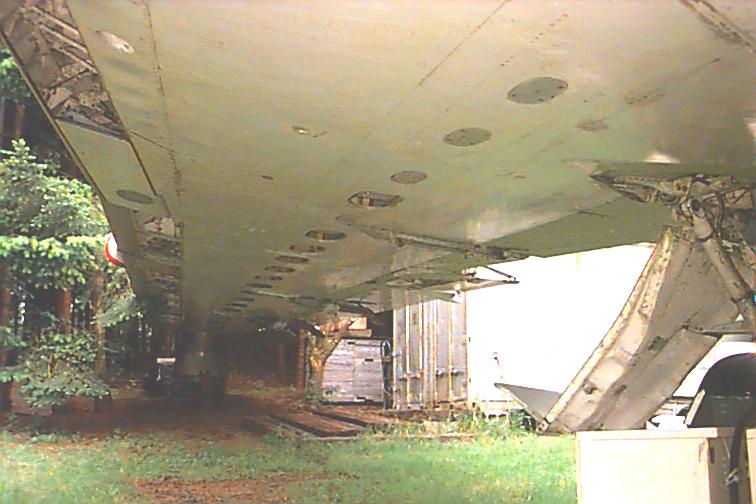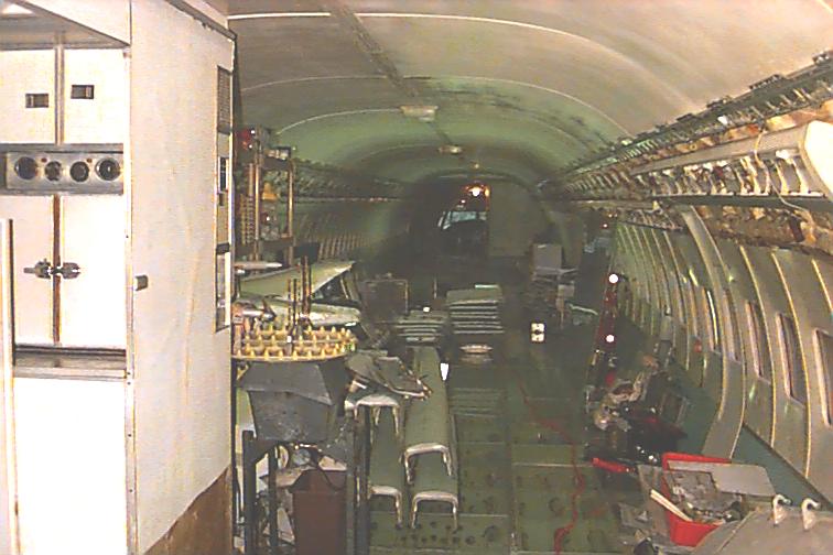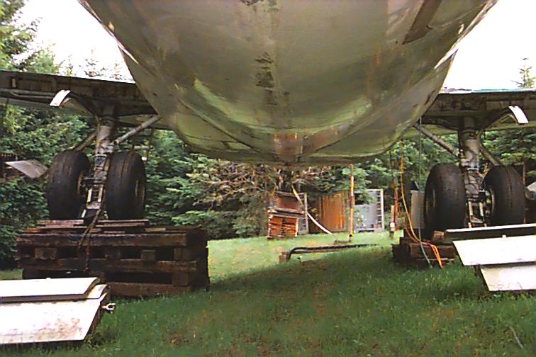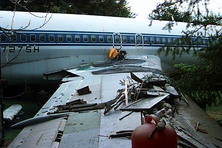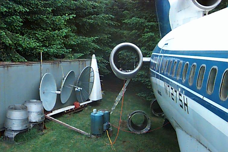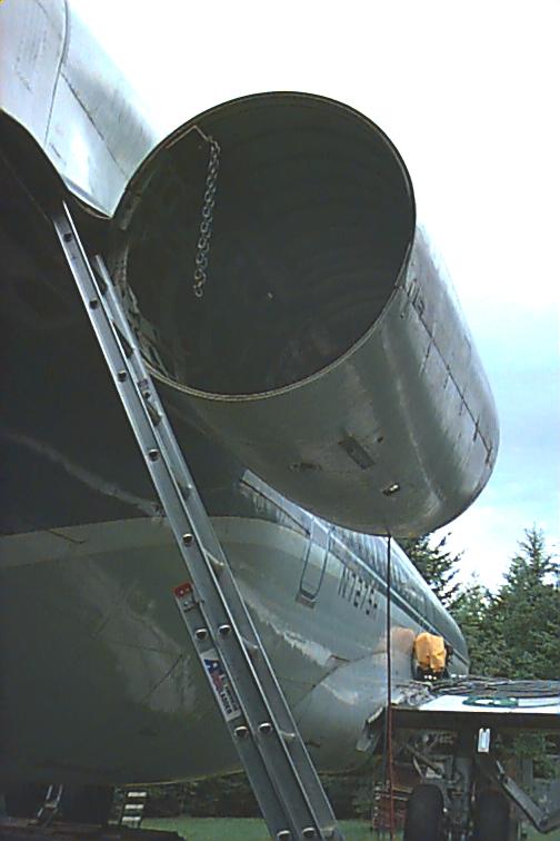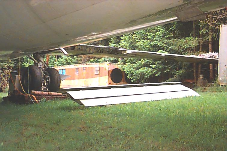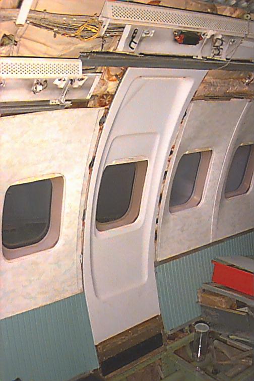 The aircraft looks more rough in these images than it does in reality, as best I can judge. Extensive pressure washing has caused a lot of paint removal, most of which comes off as chips, leaving surfaces looking like they're corroded in these images, even though in most cases they aren't. Paint loss is a necessary evil at this time. In fact, I'd prefer that all the overcoat paint (as opposed to the underlying corrosion preventative primer) come off when pressure washed, but that's not it's nature. When the more important things are completed, and I've moved in, I'll attend to beautification with a new coating of some sort - hopefully something much longer lasting than traditional paint. Maybe I can eventually get it to look like the Braniff 727 in the first image, which was obviously a new aircraft at the time the image was captured, right out of the paint shop (courtesy Boeing).