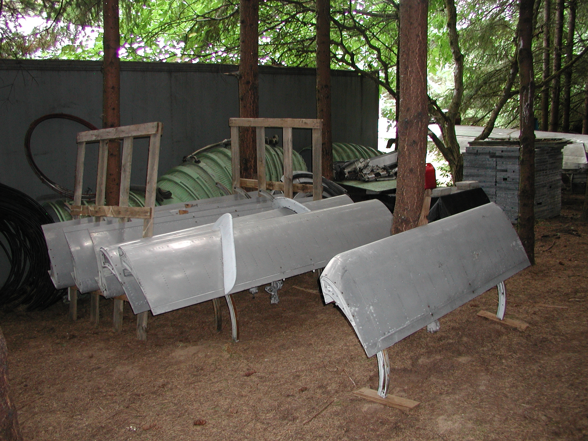 Most of the cleaned 727 components as well as some of the domestic items that now clutter the cabin will be moved into the rear cargo bay later this year to partially clear the cabin for further work. But I hope to permanently install some of the 727 components this fall, if there's enough decent weather left when the pressure washing is complete (assuming I can complete the washing). The images of the flight control surfaces, such as the flap sections, slats, and spoilers illustrate some of the work ahead. These incorporate tracks and actuators, so in theory I may be able to restore functionality to some flaps, slats and spoilers. But I wasn't able to fully complete the disassembly of the Lake City aircraft, so I'm missing some components, including some left wing inner flap drive tube connection joints, and the stabilator actuator. And the Lake City 727's Krueger flap actuators had already been removed, so I still don't have any of those. Nor any of the remarkably difficult to acquire pitot tubes, nor a Skydrol compatible hydraulic pump. So my ambitions will be limited in some areas. But I do have all the flap jack screws, the elephant ears, all the new slats with tracks and actuators, spoilers with actuators, the main landing gear actuators, the nose gear steering actuators, and the over rotation limit assembly, including its actuator, plus numerous other components. So if my pump keeps working, I should be able to advance the restoration to a notable degree.