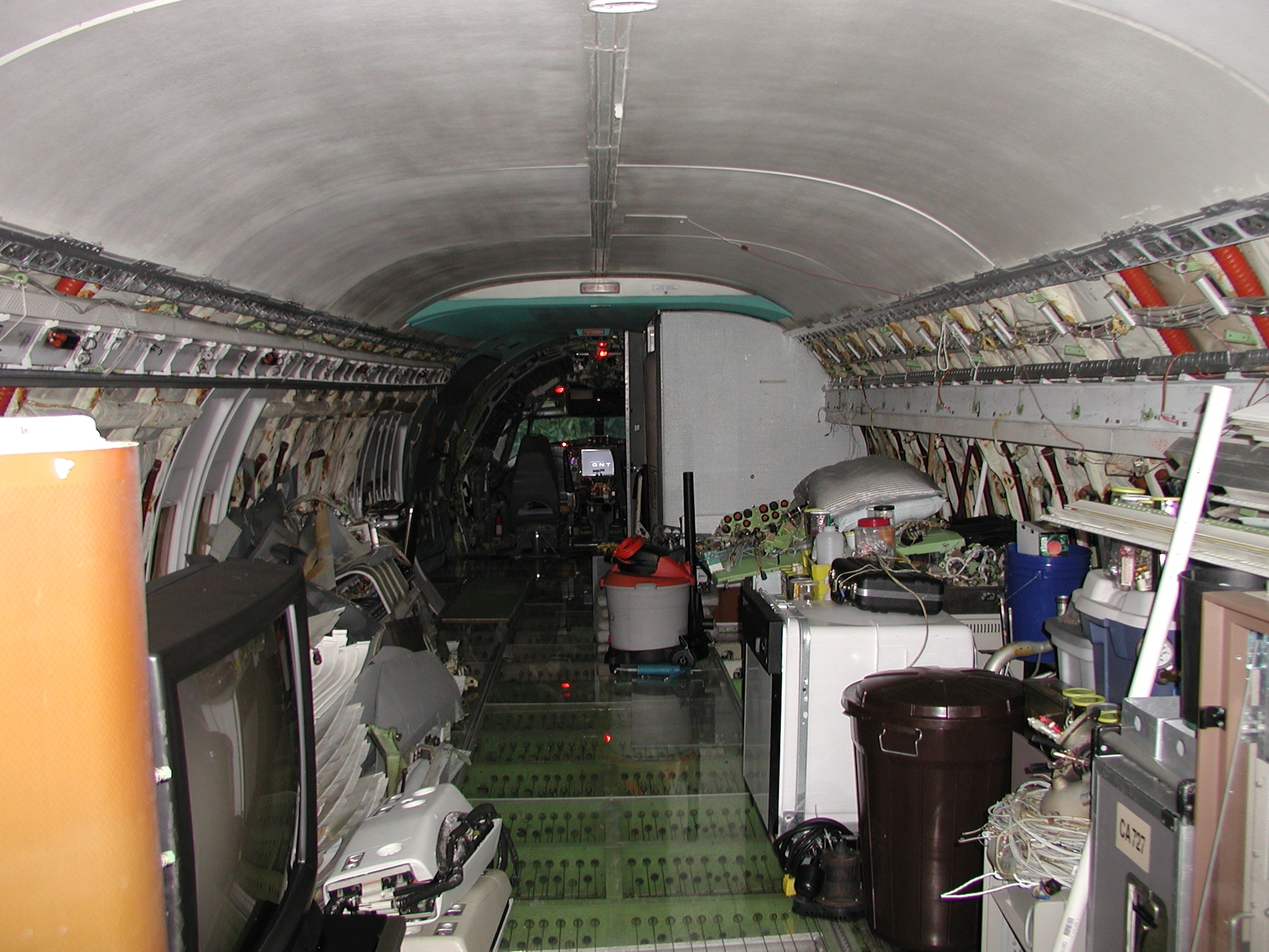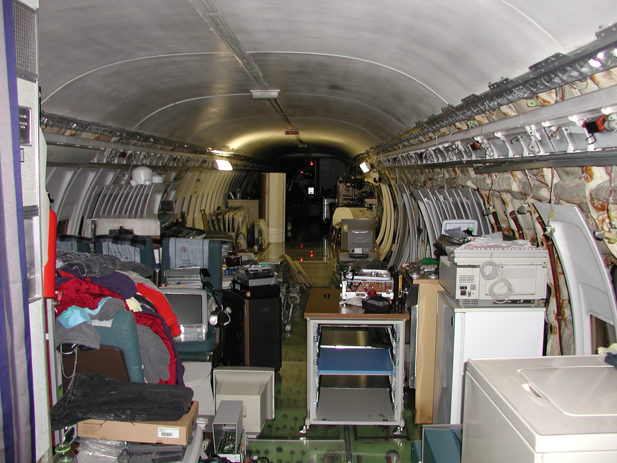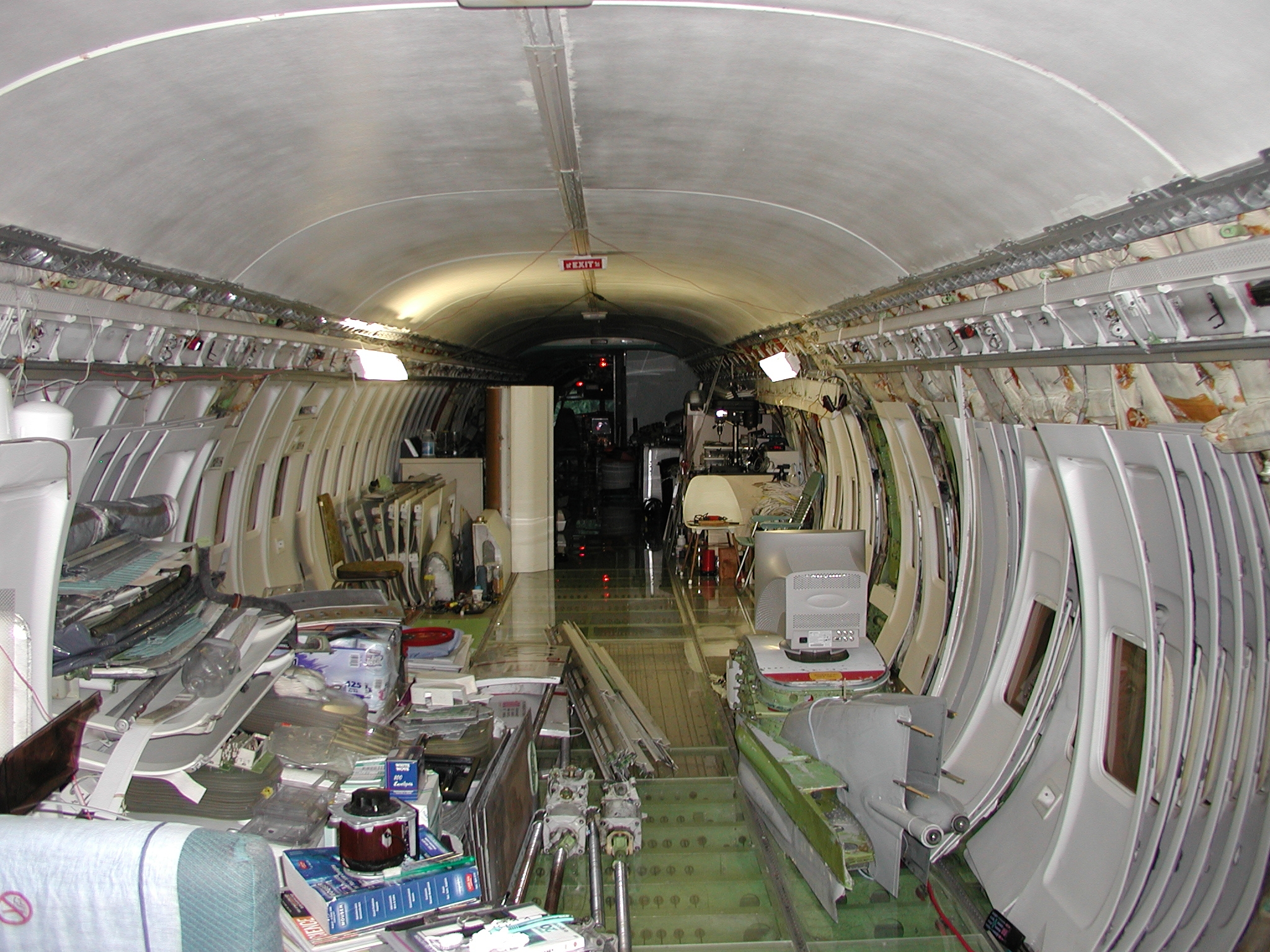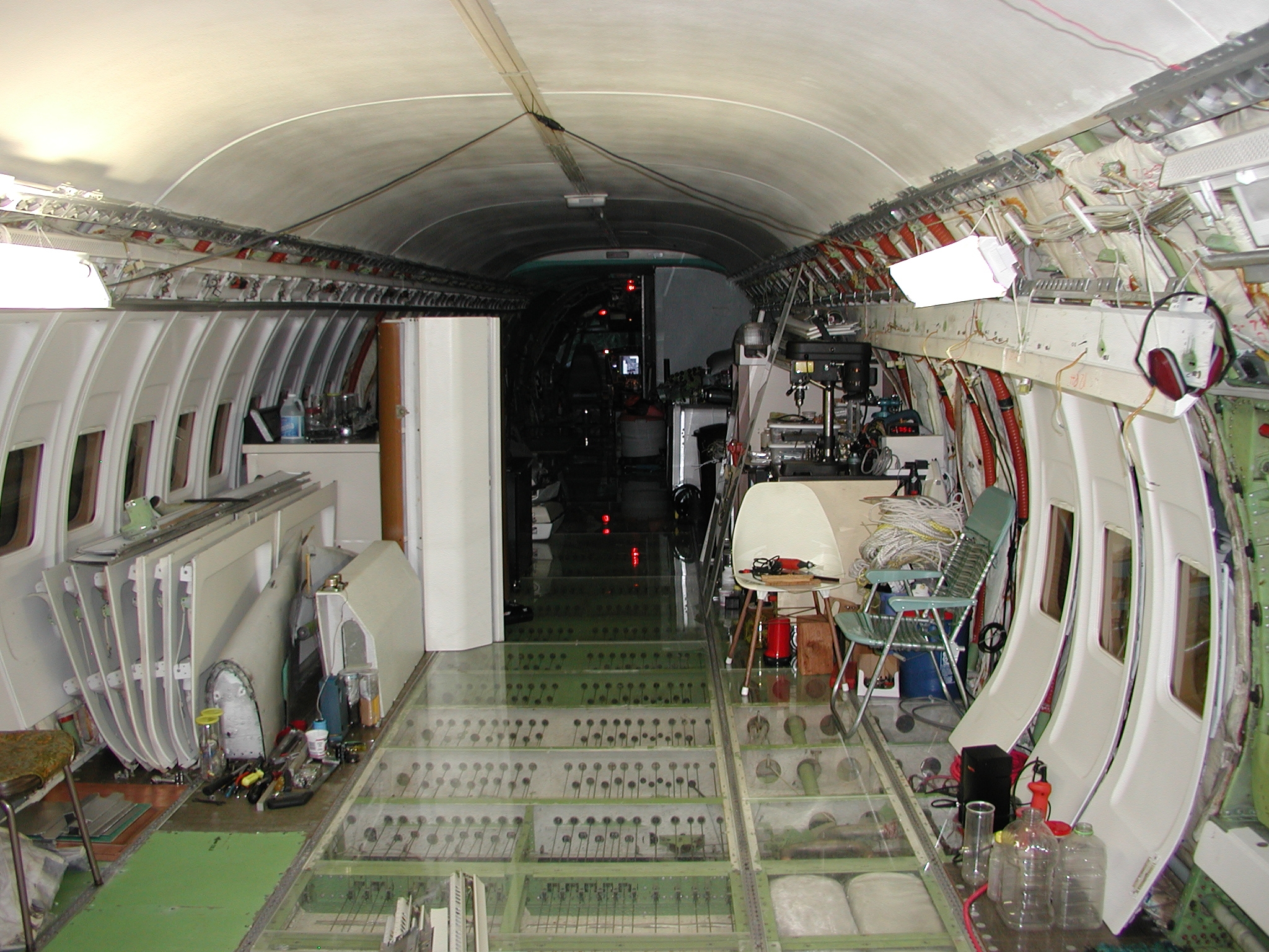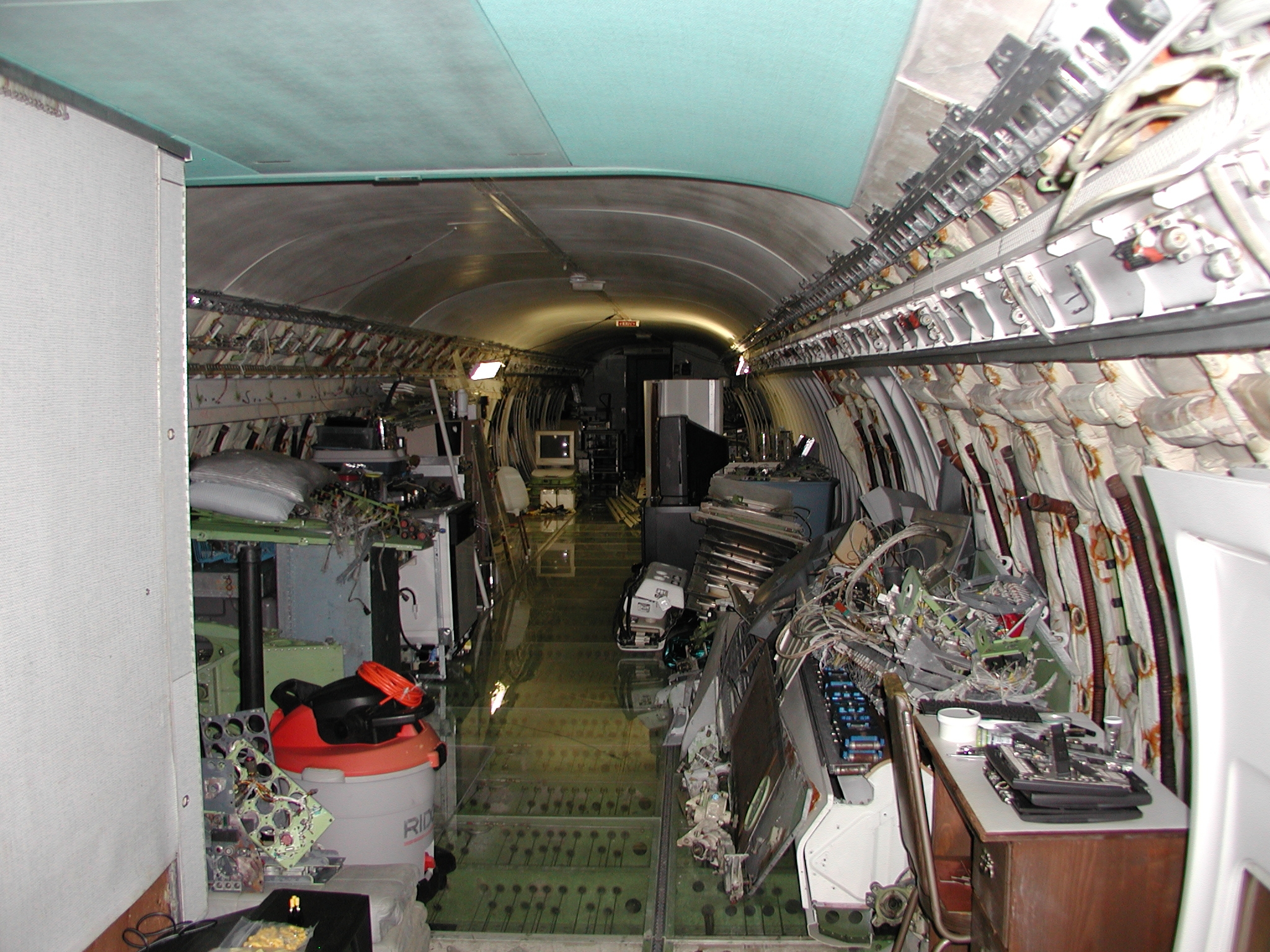 The clutter that overwhelms the cabin is the result of pressure washing the last of the components acquired from the Lake City Florida 727 freighter during December 2004 to January 2005, plus a lot of pressure washed personal domestic possessions that I've moved out of the disgusting old mobile home, before the mice and mold render them unrecoverable even by my substantial pressure washer. This is no small task - I've accumulated more artifacts over the years than I can reasonably manage (yet less than I need it sometimes seems), and any that have been in the mobile home have to be thoroughly cleaned before I'll allow them in the aircraft. For electronics, including TVs, stereos, computers, work related instruments, and similar items, this means disassembling them, pressure washing the individual sections, moving them into the very dry cabin (due to frequent operation of an air dehydrator), then reassembling and testing them once thoroughly dry. It's a lot of work, but it fully restores them to showroom condition (in terms of cleanliness), and thus makes them compatible with the aircraft. Frankly, it's either that or discard them - the mobile home is that badly degraded (it's genuinely disgusting). Most items will simply sit in the aircraft for later use, although some serve to inform or entertain me during work breaks or as background to work. This effort is ongoing - I'm trying to complete as much pressure washing as possible before the weather degrades, and hope to essentially finish it by winter, reducing the mobile home to the barest of basics (and cheapest, since remaining items may be unrecoverable later).