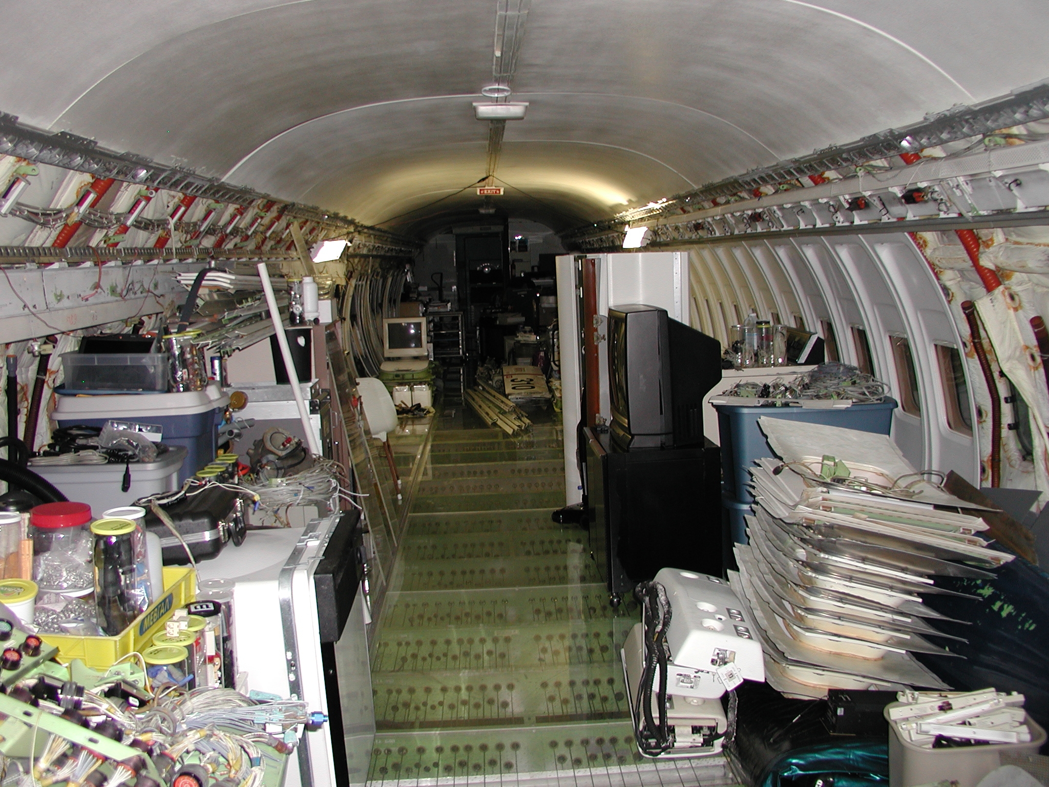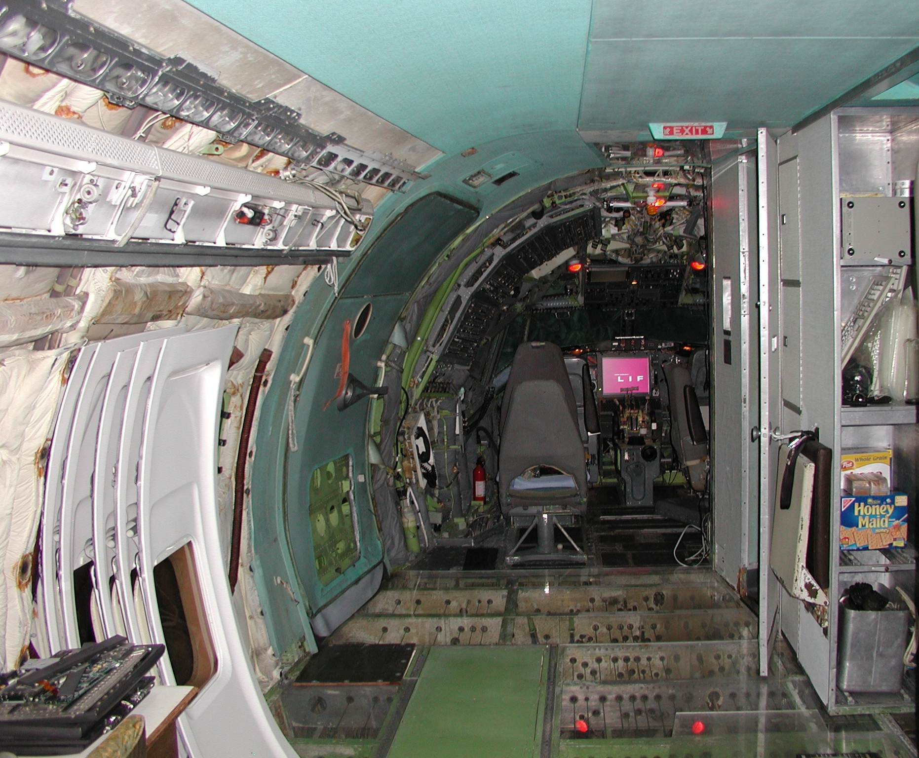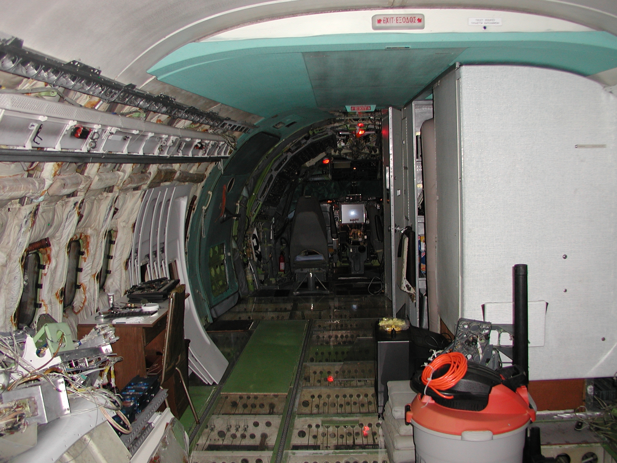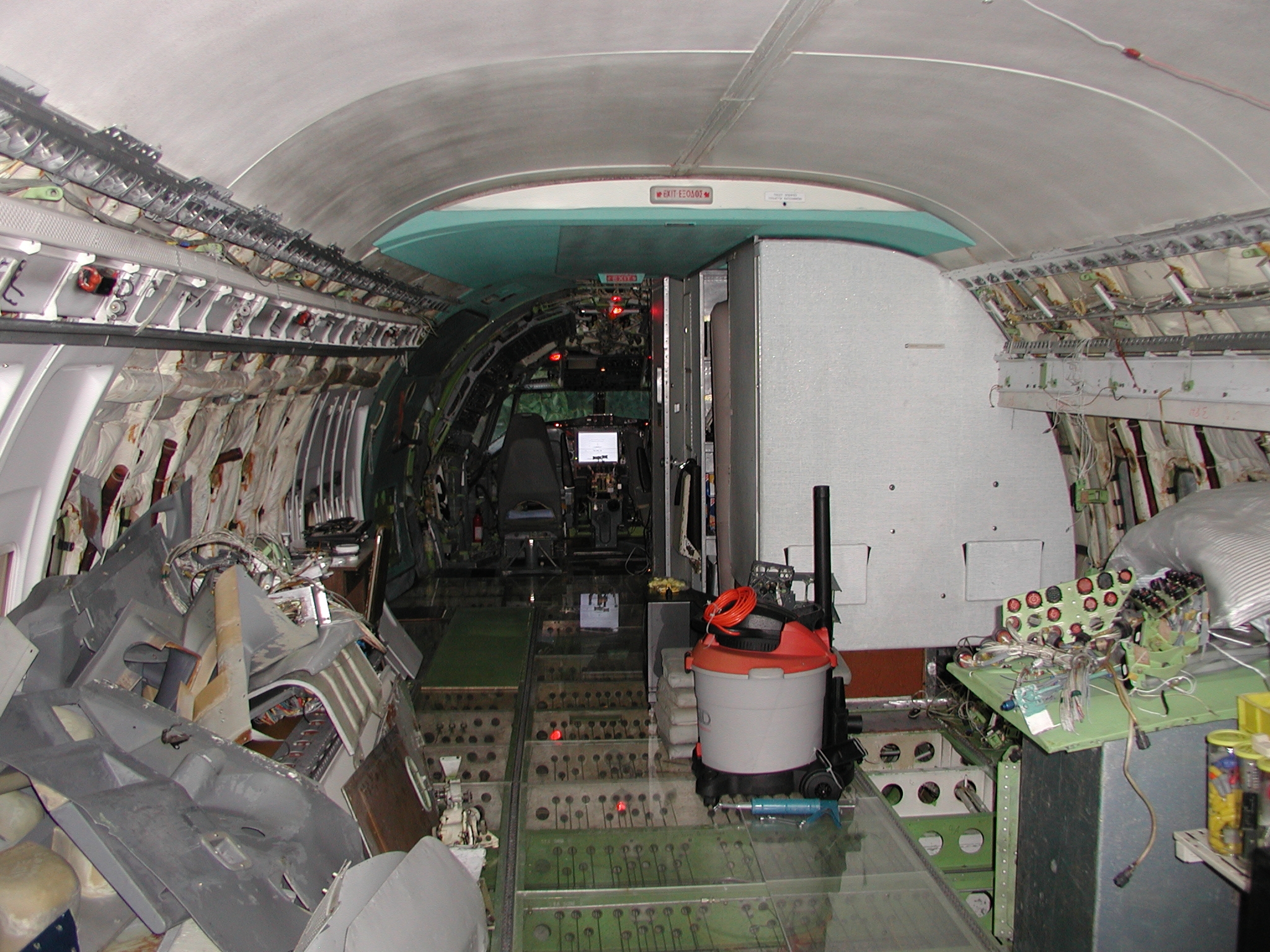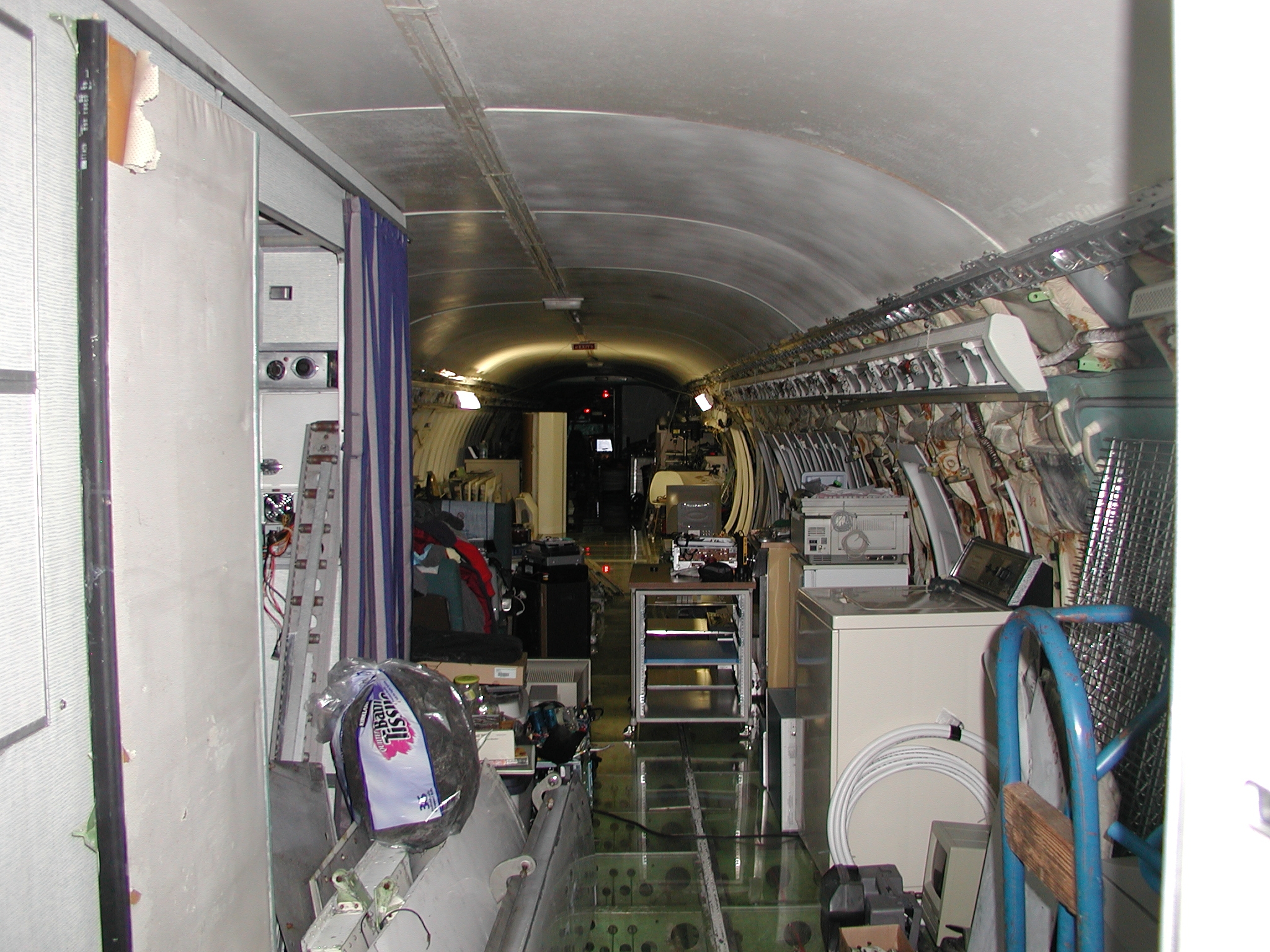 The clutter that overwhelms the cabin is the result of pressure washing the last of the components acquired from the Lake City Florida 727 freighter during December 2004 to January 2005, plus a lot of pressure washed personal domestic possessions that I've moved out of the disgusting old mobile home, before the mice and mold render them unrecoverable even by my substantial pressure washer. This is no small task - I've accumulated more artifacts over the years than I can reasonably manage (yet less than I need it sometimes seems), and any that have been in the mobile home have to be thoroughly cleaned before I'll allow them in the aircraft. For electronics, including TVs, stereos, computers, work related instruments, and similar items, this means disassembling them, pressure washing the individual sections, moving them into the very dry cabin (due to frequent operation of an air dehydrator), then reassembling and testing them once thoroughly dry. It's a lot of work, but it fully restores them to showroom condition (in terms of cleanliness), and thus makes them compatible with the aircraft. Frankly, it's either that or discard them - the mobile home is that badly degraded (it's genuinely disgusting). Most items will simply sit in the aircraft for later use, although some serve to inform or entertain me during work breaks or as background to work. This effort is ongoing - I'm trying to complete as much pressure washing as possible before the weather degrades, and hope to essentially finish it by winter, reducing the mobile home to the barest of basics (and cheapest, since remaining items may be unrecoverable later).