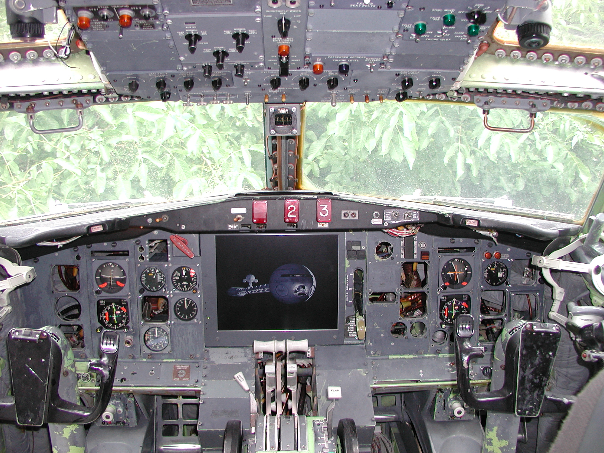 Regarding the cockpit, I cleaned and installed several additional original 727 modules, instruments, and legend panels generously donated by Irving Jensen (thank tons Irving!), and installed a new 17" DVI connected 1280 x 1024 computer display in the P2 panel ($90 from TigerDirect after rebates, which were honored).
