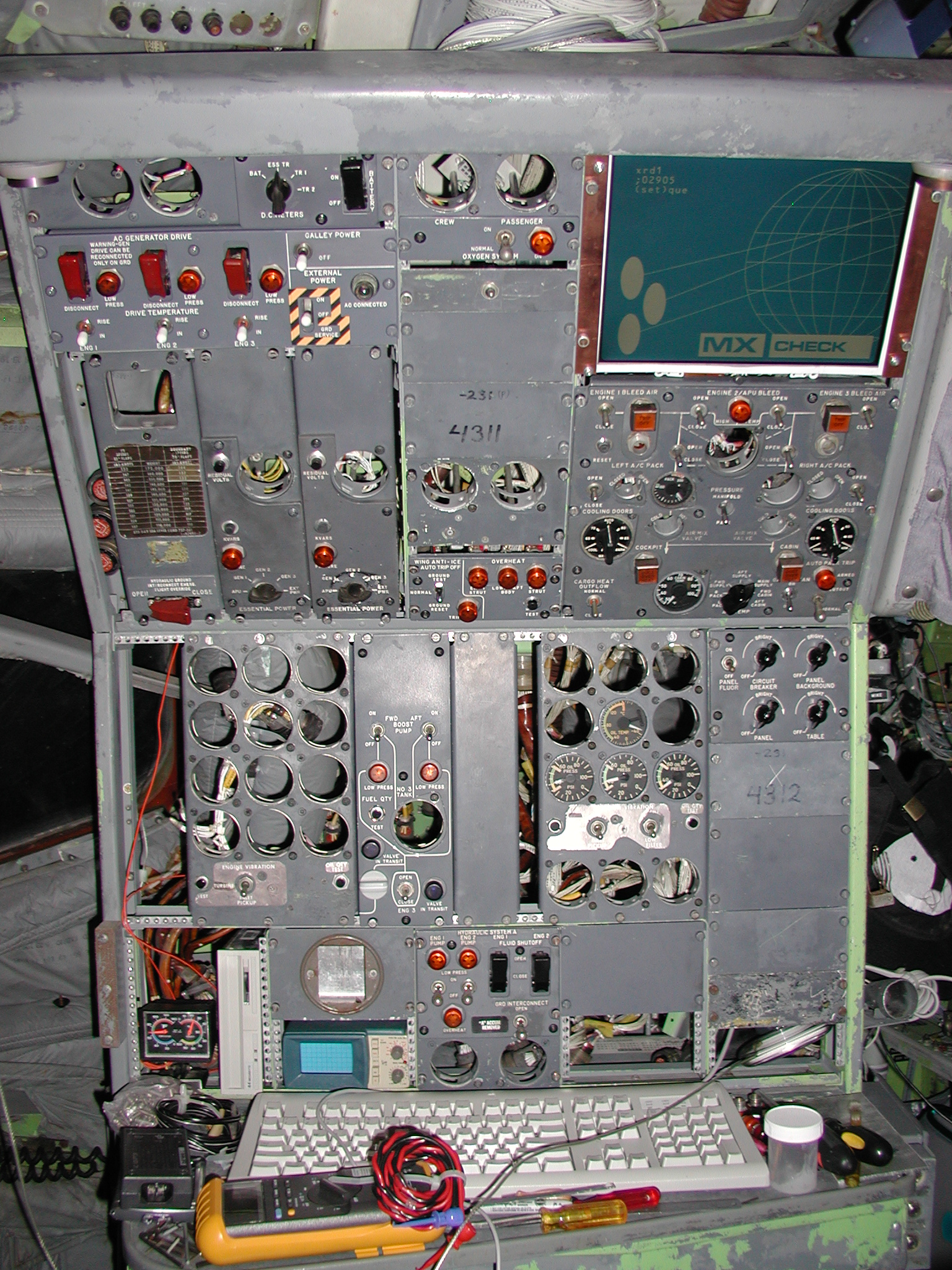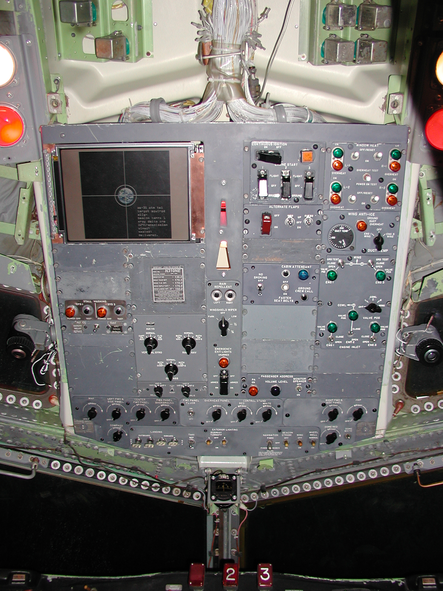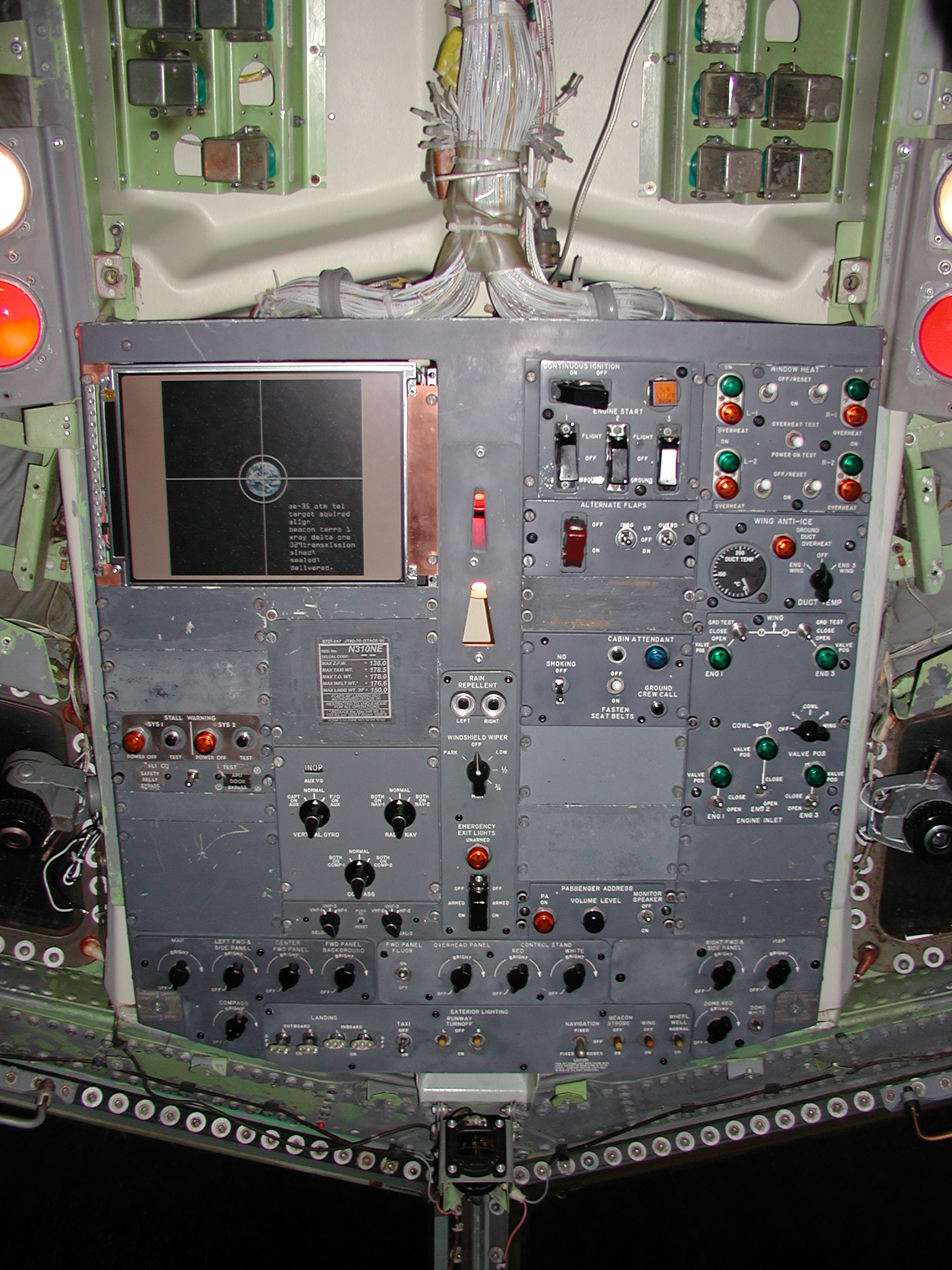 I haven't finished the mounting work for the two small liquid crystal displays in the P4 and P5 panels yet, and may not until next winter, when outdoor work becomes impractical. The goal is the same - they should also be easy to remove and replace with original 727 modules. They're currently secured with the standard 1/4 fasteners, but the computers powering them, legacy Mac laptops, need to be trimmed and secured to the back of the display to create a unified module. Currently the laptop bodies are just loosely attached behind the display panel. I have several of these old laptops, and will add them to otherwise blank spaces as time permits (next winter mostly), and network them of course.