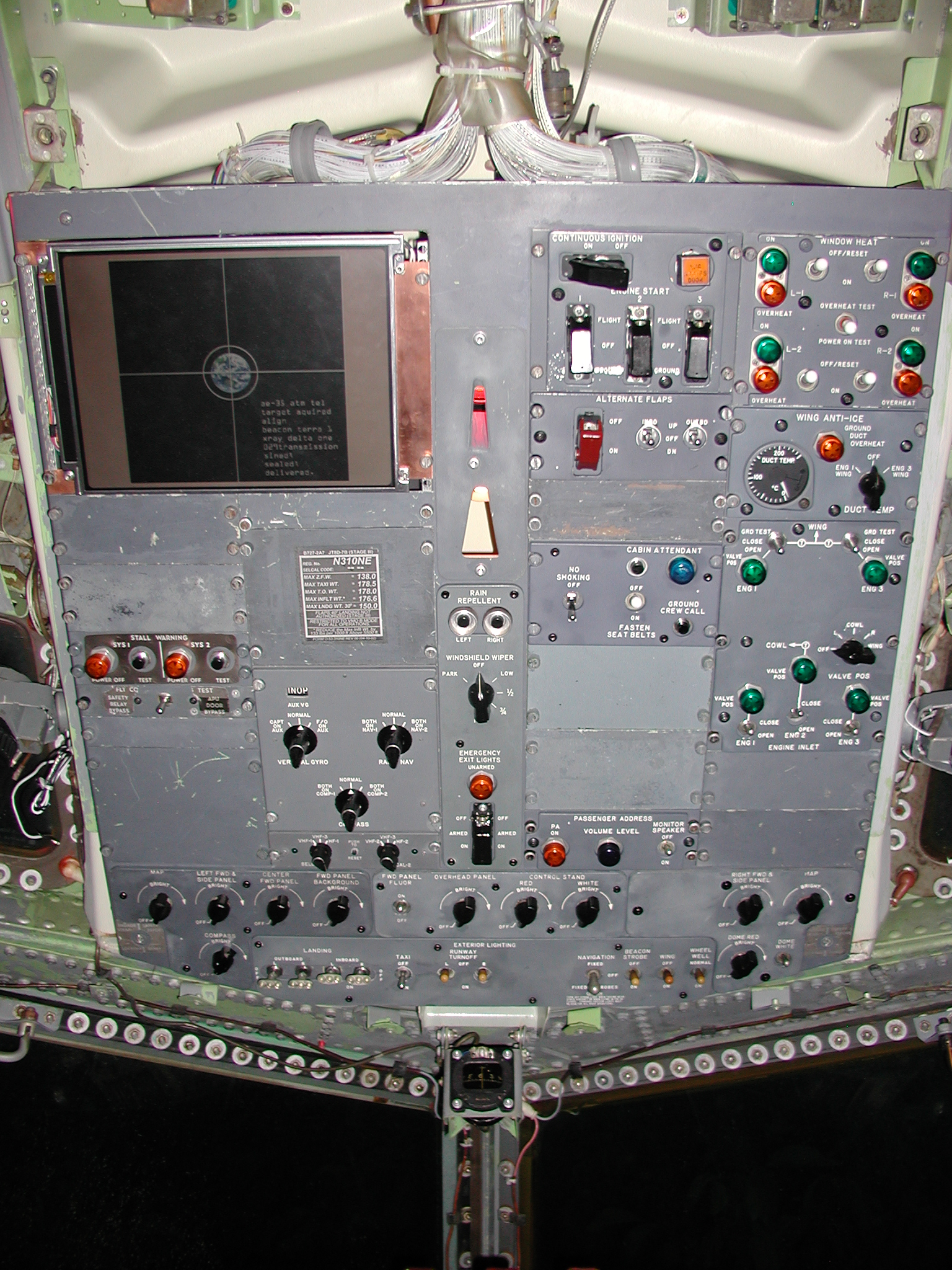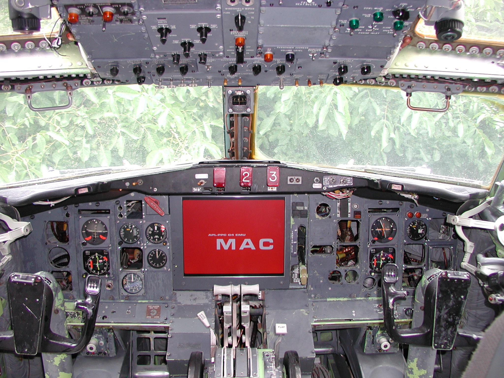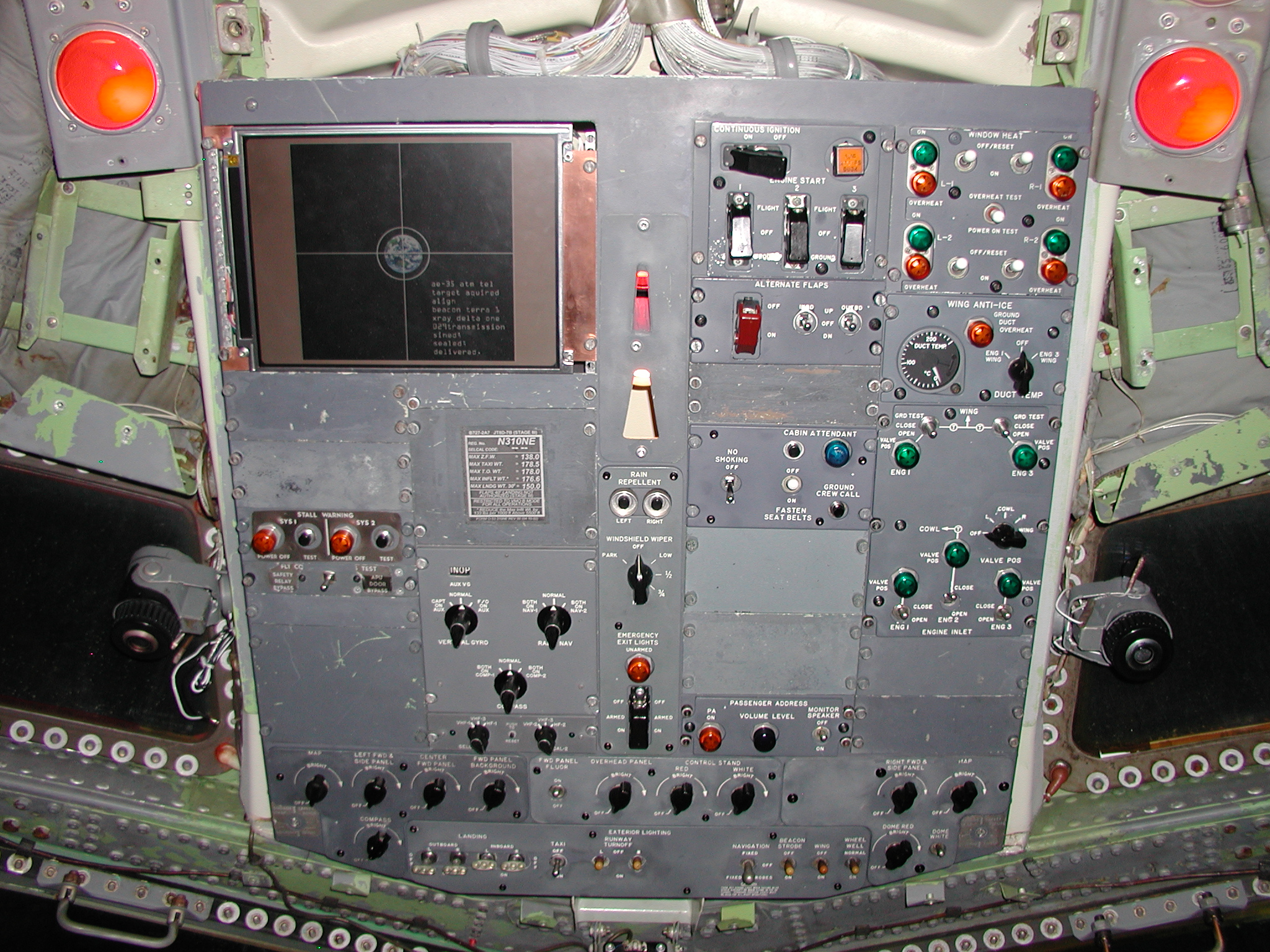 I haven't finished the mounting work for the two small liquid crystal displays in the P4 and P5 panels yet, and may not until next winter, when outdoor work becomes impractical. The goal is the same - they should also be easy to remove and replace with original 727 modules. They're currently secured with the standard 1/4 fasteners, but the computers powering them, legacy Mac laptops, need to be trimmed and secured to the back of the display to create a unified module. Currently the laptop bodies are just loosely attached behind the display panel. I have several of these old laptops, and will add them to otherwise blank spaces as time permits (next winter mostly), and network them of course.