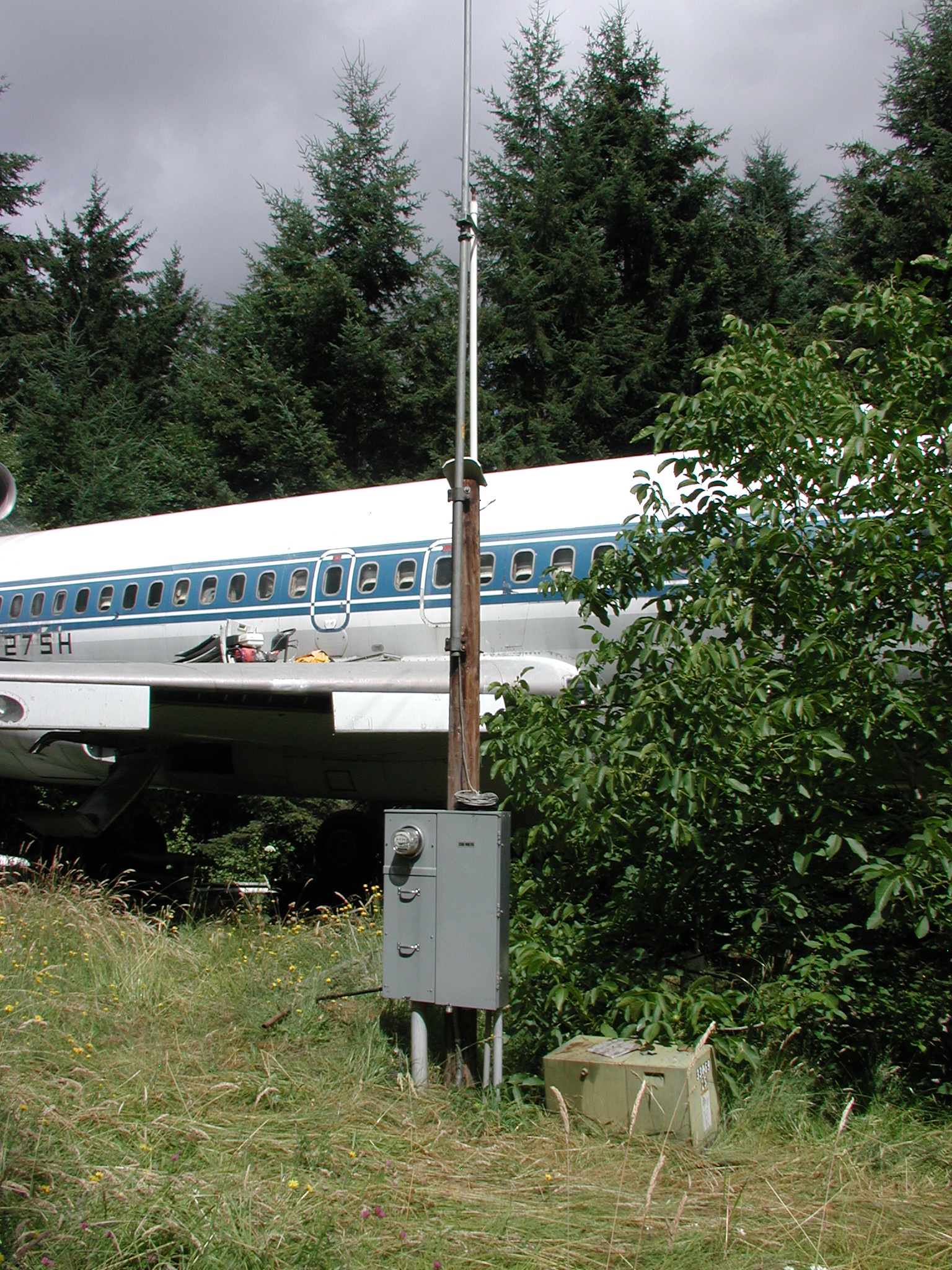 I added a comparatively high capacity sprinkler above the power meter pole. It's mounted at a height that allows it to keep the forward fuselage and right wing wet for wildfire mitigation. I also installed a fire hose connection in the ground below the fuselage, and I have a modest but serviceable 1.25" hose on hand. Both were tested and work fine. Either will deliver water as fast as my well pump can provide it when their valves are fully open. I still need to add a sprinkler to cover the aft fuselage and left wing. Of course, these and some sprinklers I have in the forest won't stop a wildfire. But they're useful adjuncts to an overall fire fighting effort, especially when activated well ahead of a fire's arrival, and might tip the balance when combined with other efforts. But they do depend upon utility power, and in a wildfire that's a very weak link of course. (My domestic generator needs repair - it can deliver some power, but it's clearly not capable of delivering full capacity for reasons unknown.)