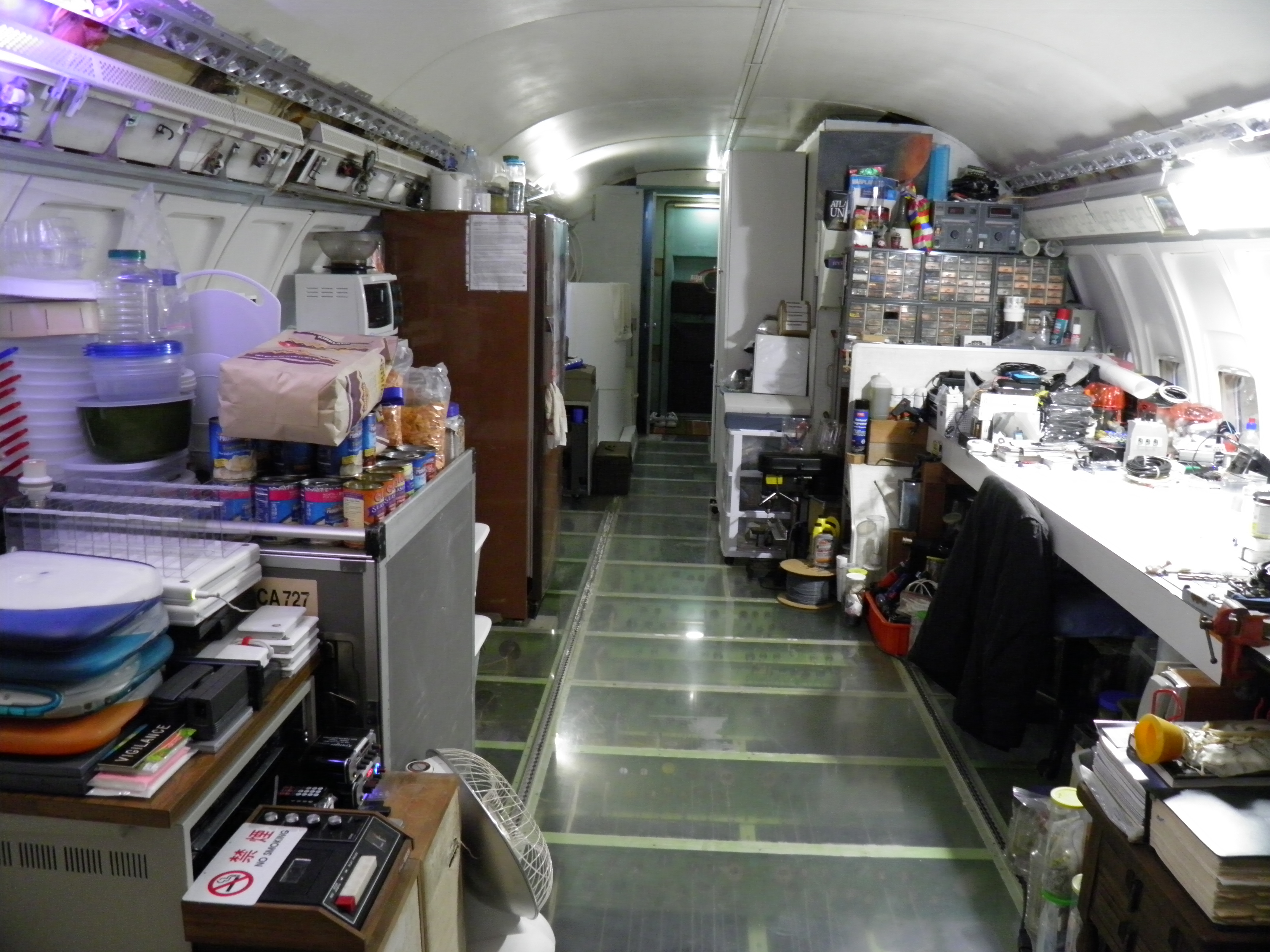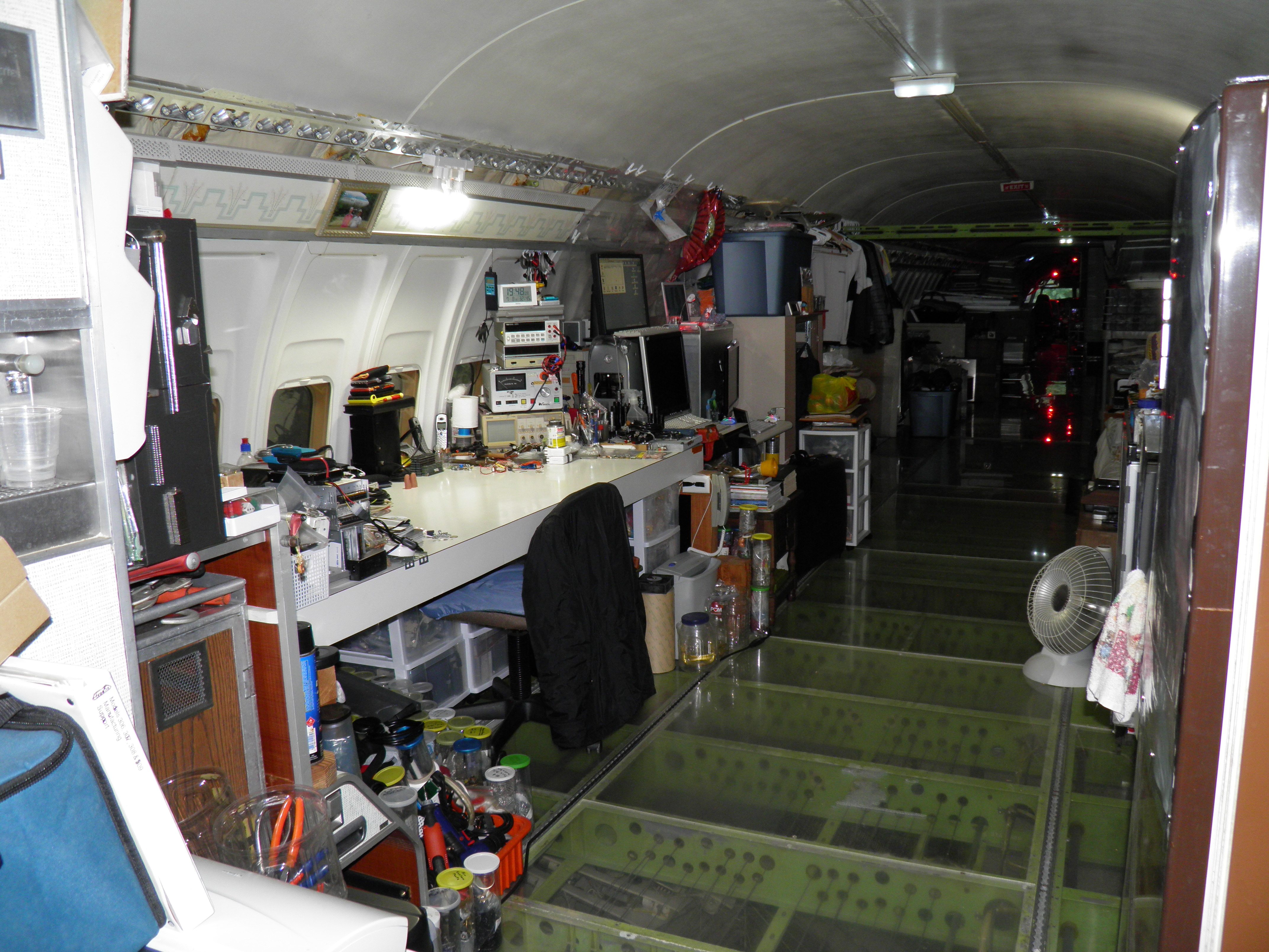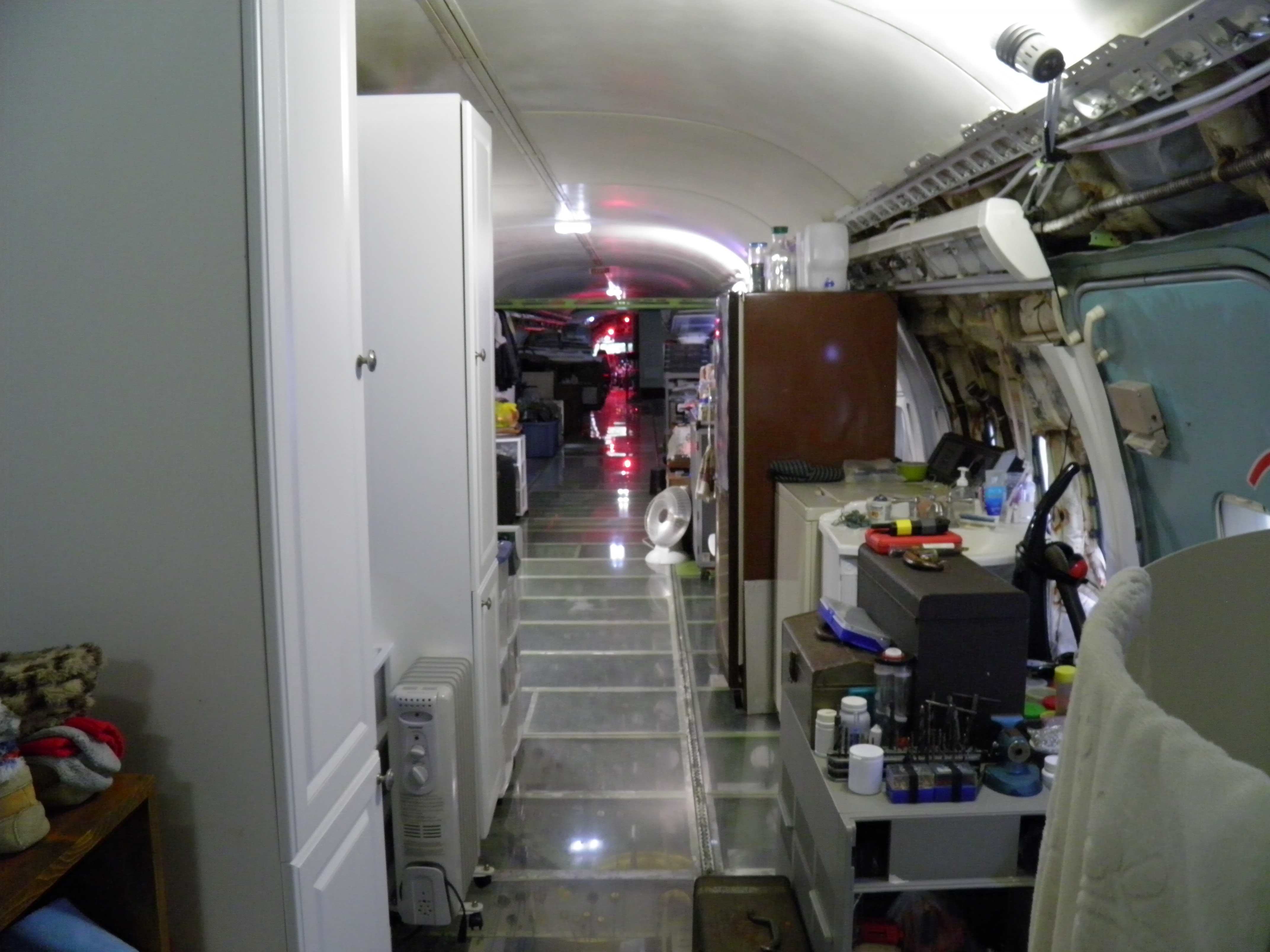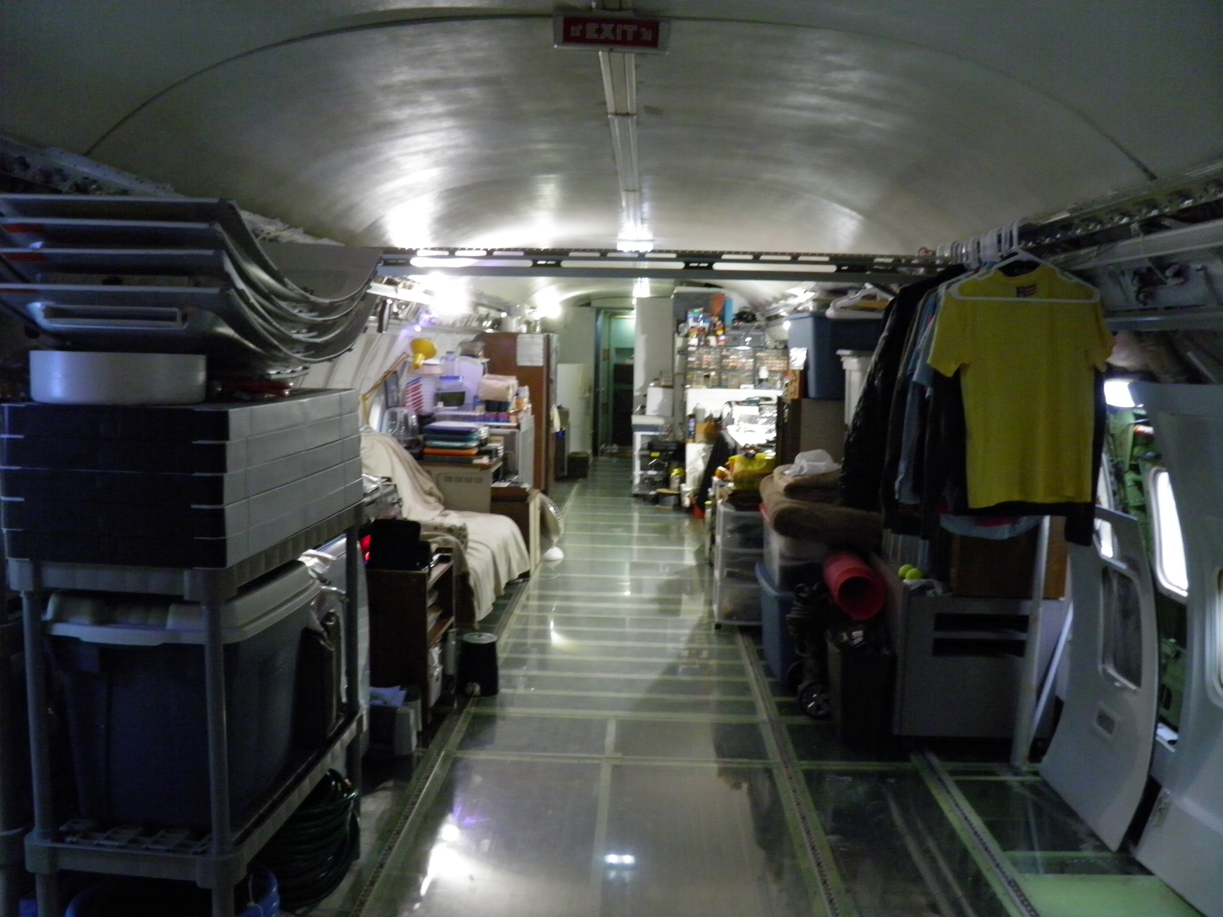 Numerous additional cabin window panels have been mounted, and some of the original cabin florescent light fixtures have been removed, and methods to cover their portion of the bare area underneath are being explored as you can see in a few of the images. The same conversion will be performed for the rest of the cabin later.