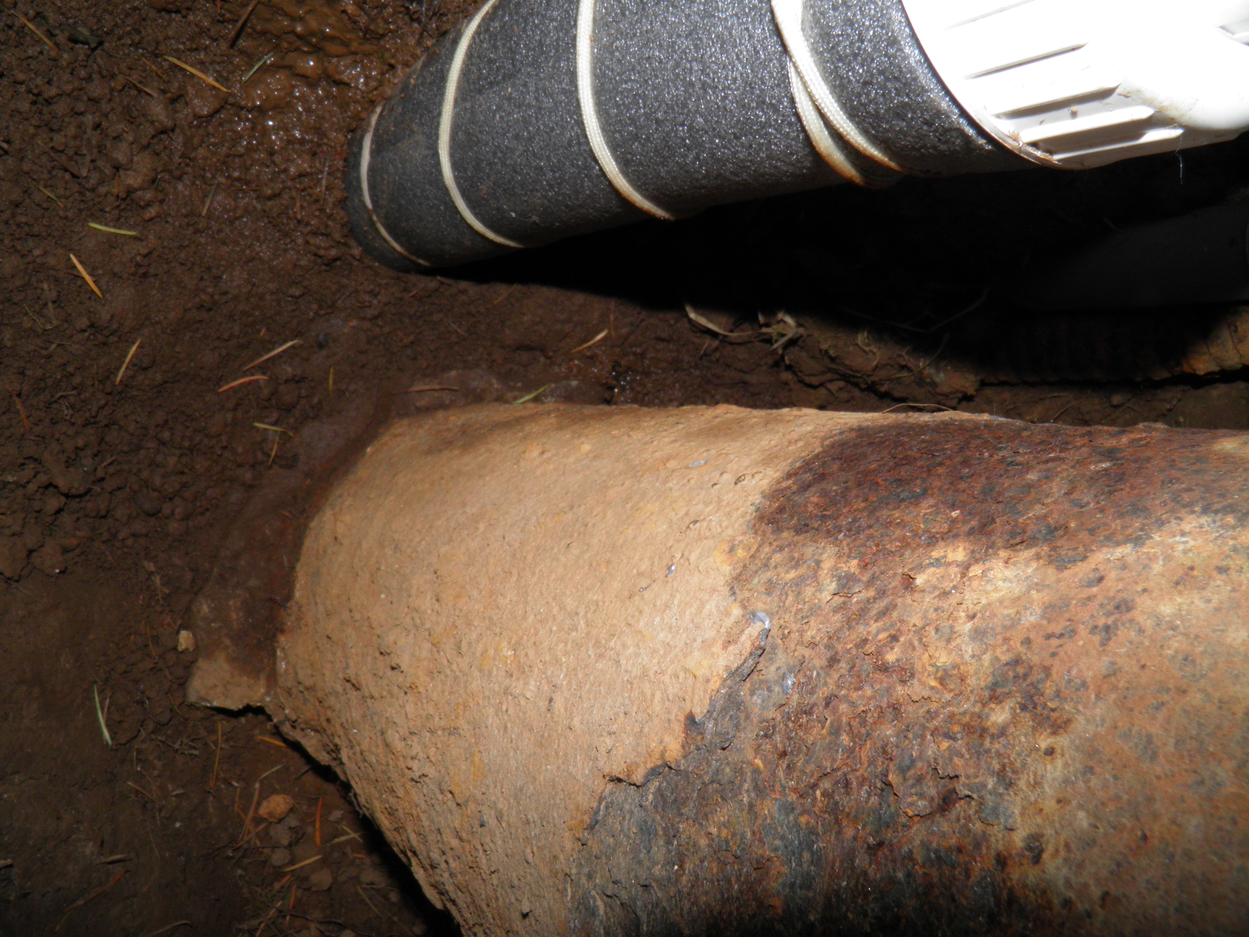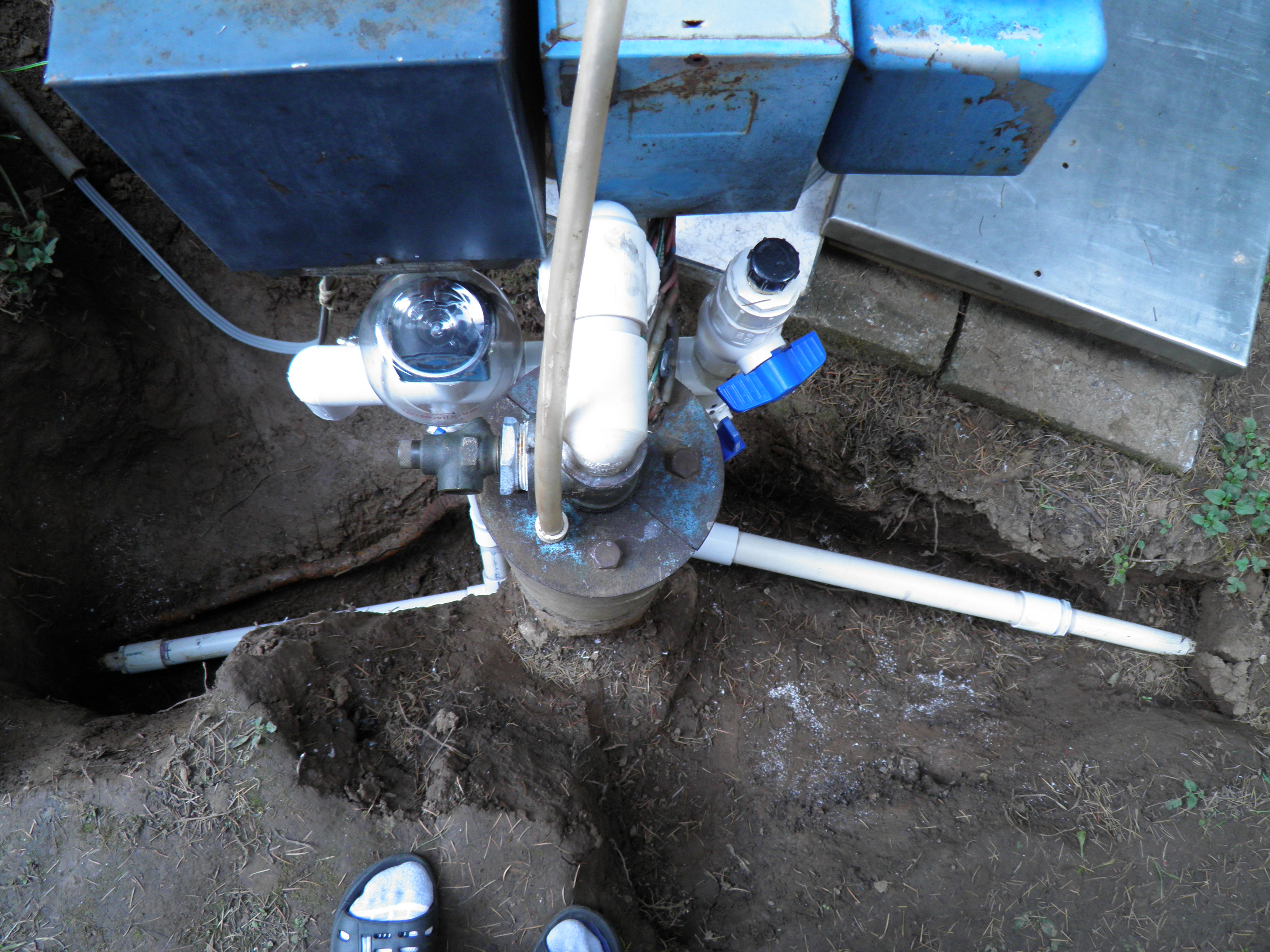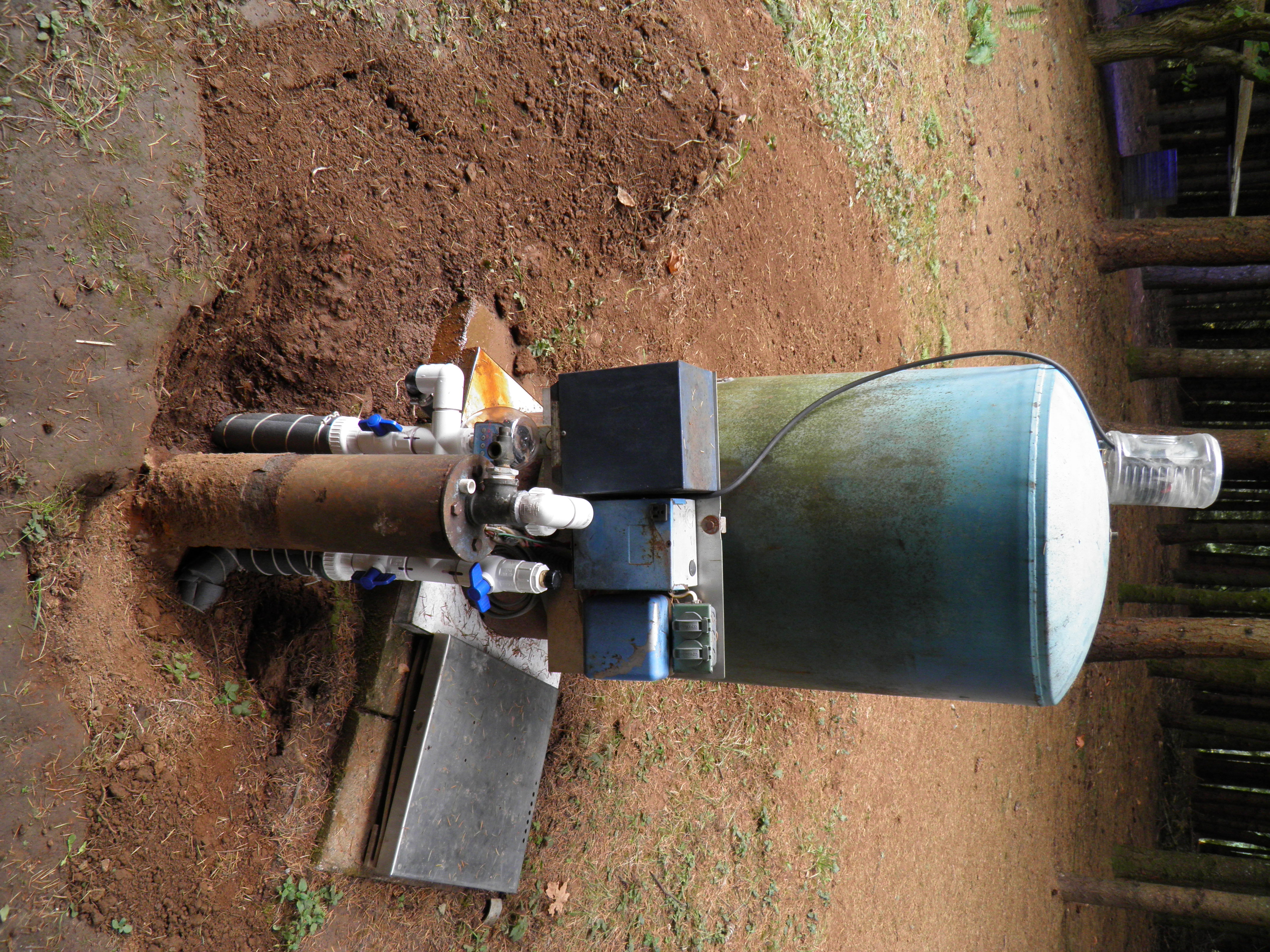 The steel well casing is badly corroded below natural ground level as you can see. I don't yet know whether this severity of corrosion extends further down where the protective concrete jacket seems generally intact - I'll investigate by chipping a bit of the concrete away so I can inspect the underlying steel. If the concrete protected steel has minimal corrosion I'll try to remove the corrosion above the concrete level, add a protective coating, then pour new concrete to extend the concrete jacket well above ground level. But this work won't occur until spring or summer 2018 at the earliest.