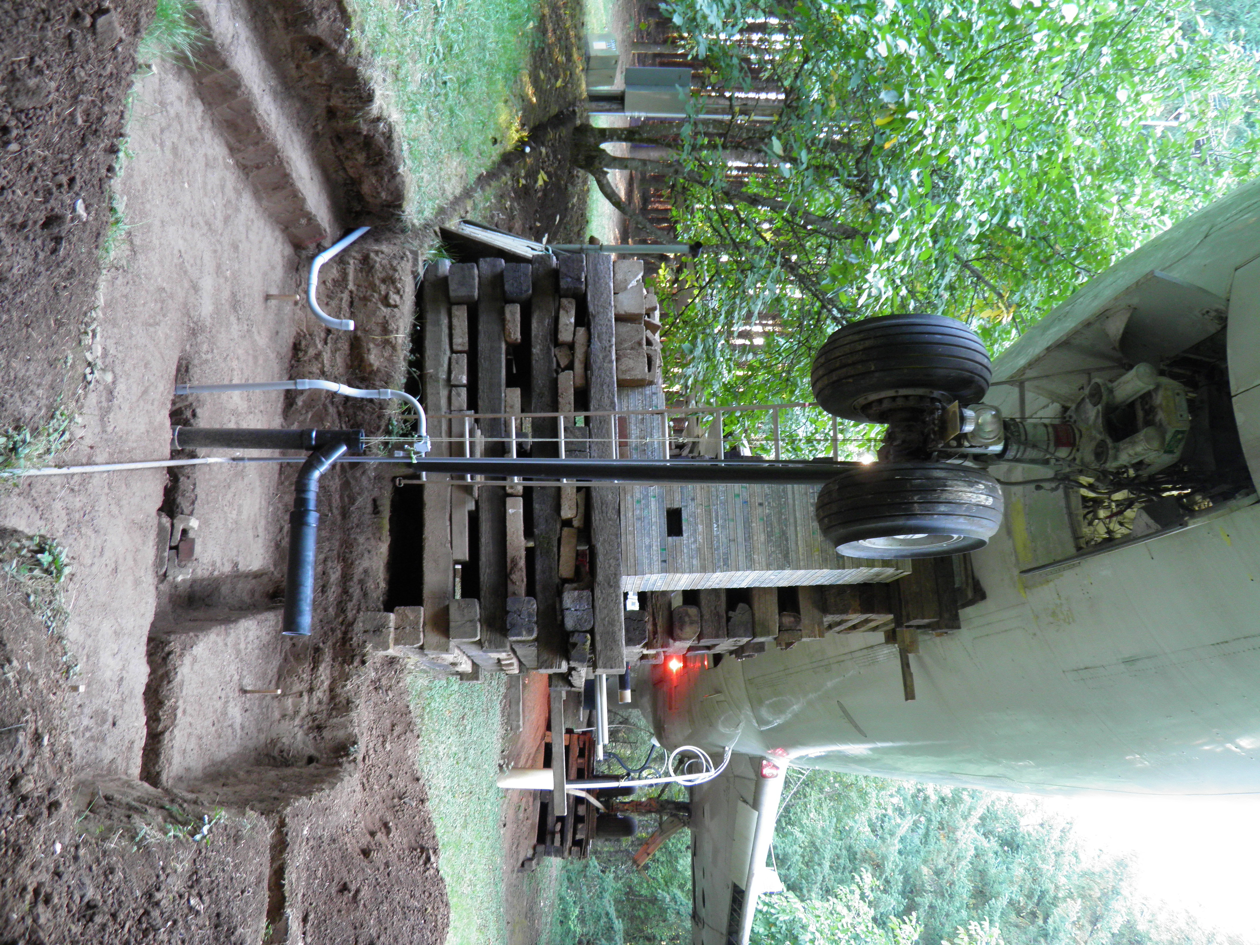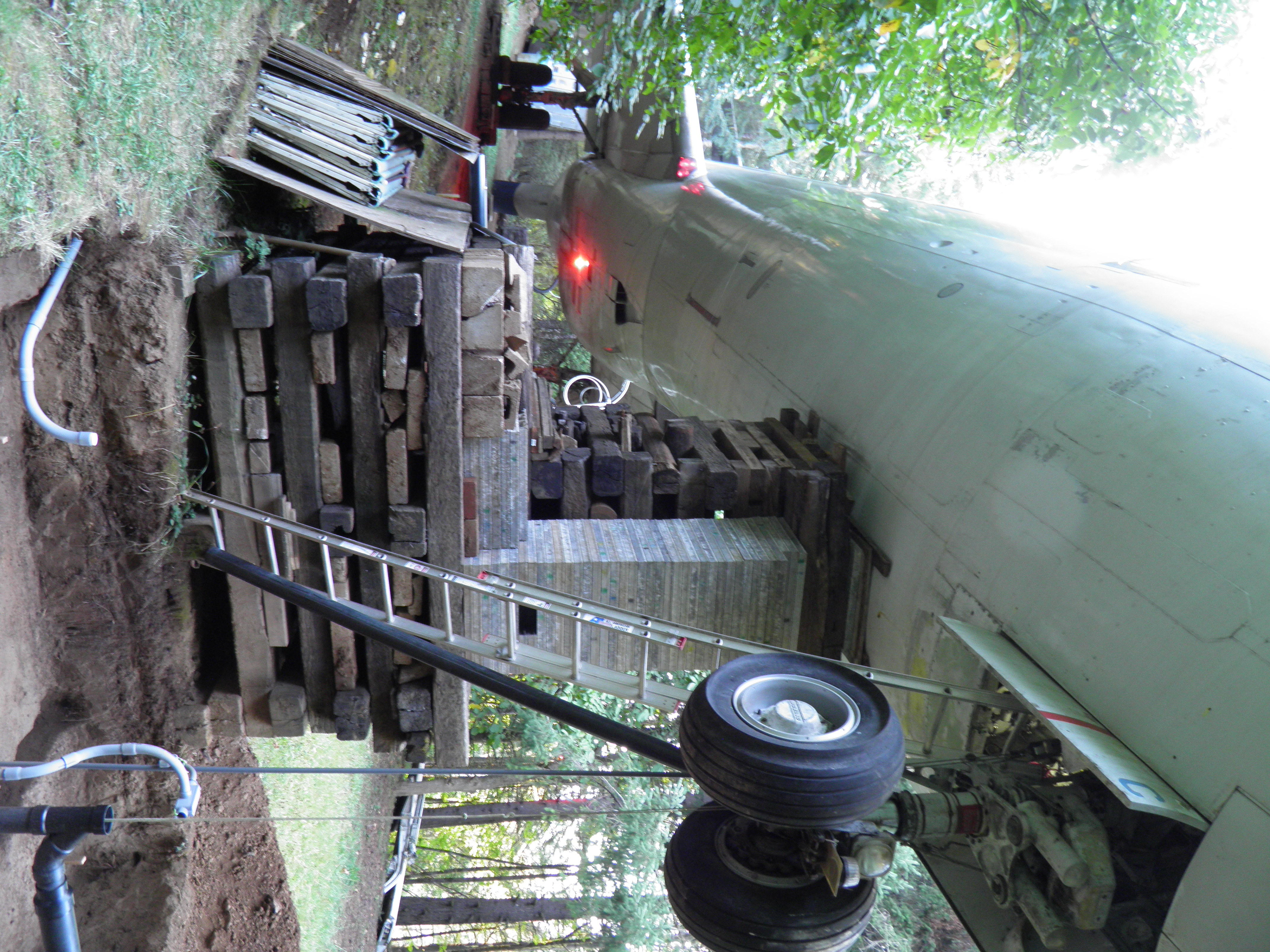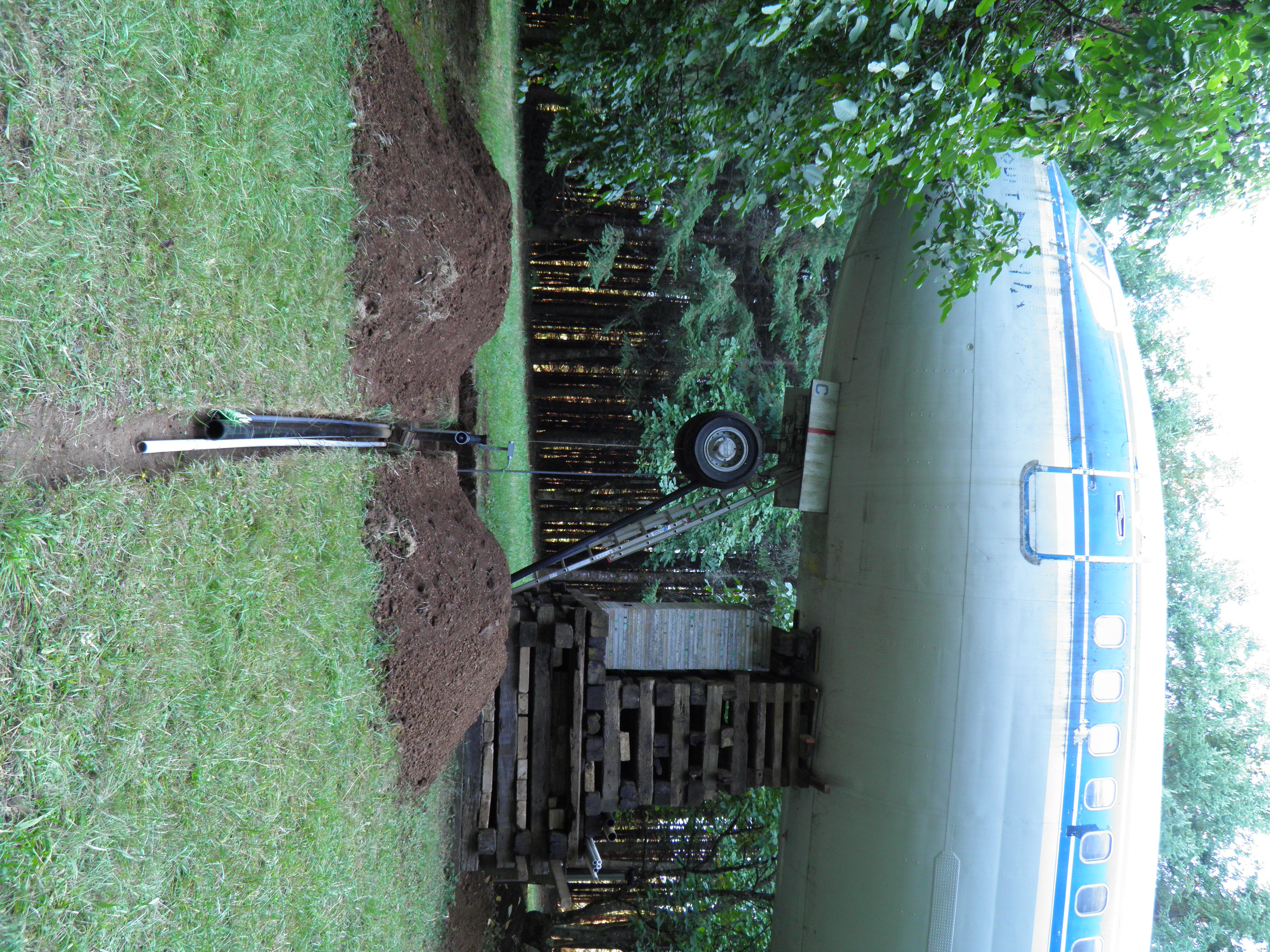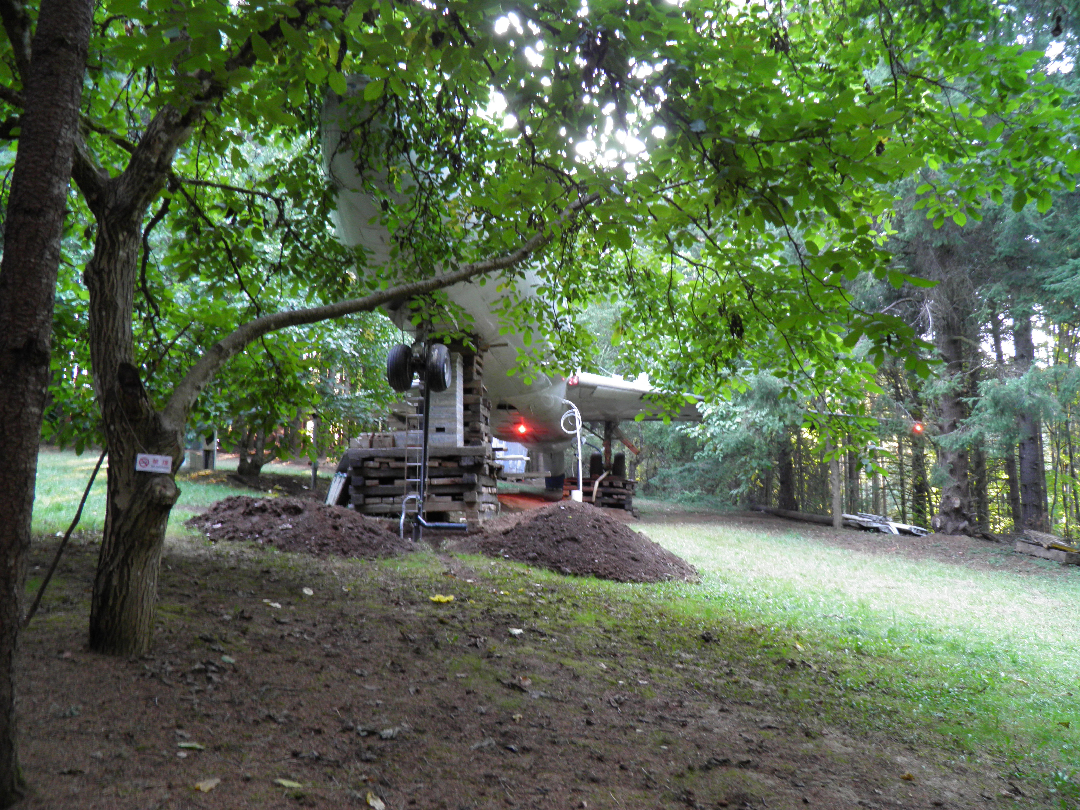 Summer work focused exclusively on outside projects including a thorough pressure wash of my aircraft, preparation for fabrication of a permanent front landing gear support structure and related infrastructure, wash and relocation of my unsightly west storage van, relocation of unsightly 727 components and other material which was located generally south of my right wing, installation of a small wind generator, reconstruction of the water plumbing adjacent to my well, and numerous more modest projects.