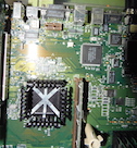 There's also a crystal a few more centimeters forward of the display port, near the processor. It might be Y4, Y7, or Y12 and is labeled 0103T5H. It might be a 25 MHz crystal but currently I'm not certain. Mine seems either dead or set to an off mode by the system. If dead, such as from cleaning rigors, it might be the cause of my display circuit's failure. I'd be grateful for any information about that crystal and its possible relationship to the display circuits as well. Or of course the core reference, schematics.