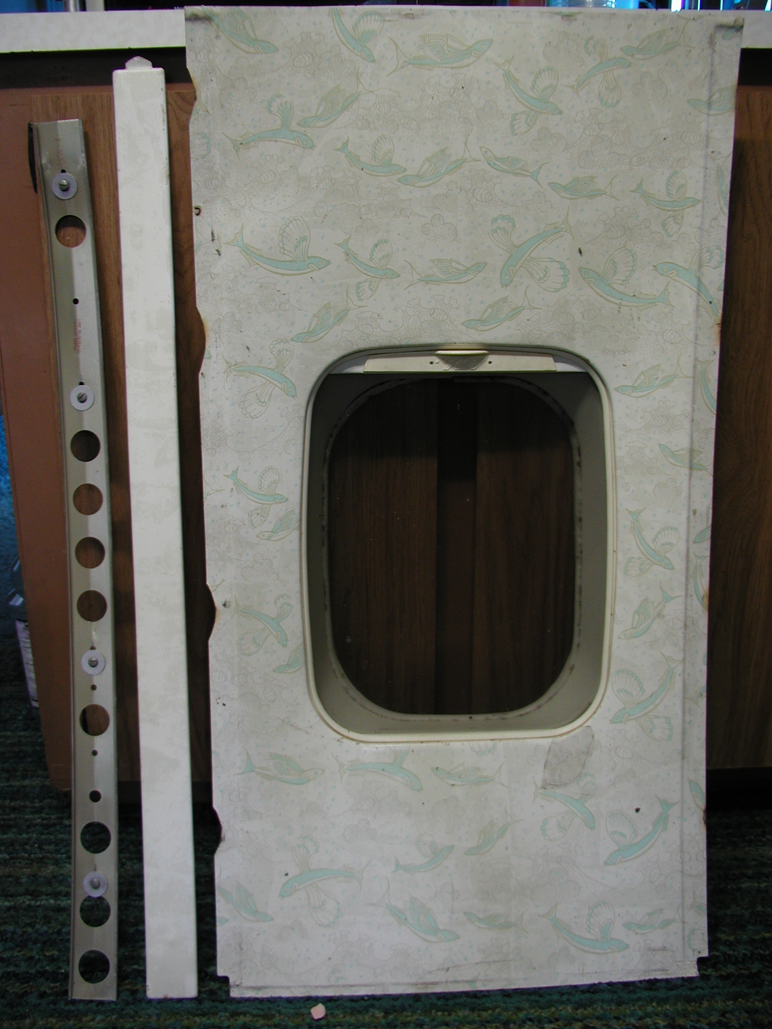 Hat Racks: The hat racks come in various lengths, with 5 feet the most common. Some are in average shape, but many are in bad shape, including damage due to rodent chewing of the fabric or vinyl covering. They're quite bulky, and rather heavy, and thus expensive to ship. Mounting rods for the hat racks are available, but the outboard ends depend upon brackets that I'm retaining in my aircraft (I'll use those to mount the light fixtures in their new position). So other means would have to be provided to secure the outboard ends of the rods, and the outboard edge of the hat rack panels themselves.